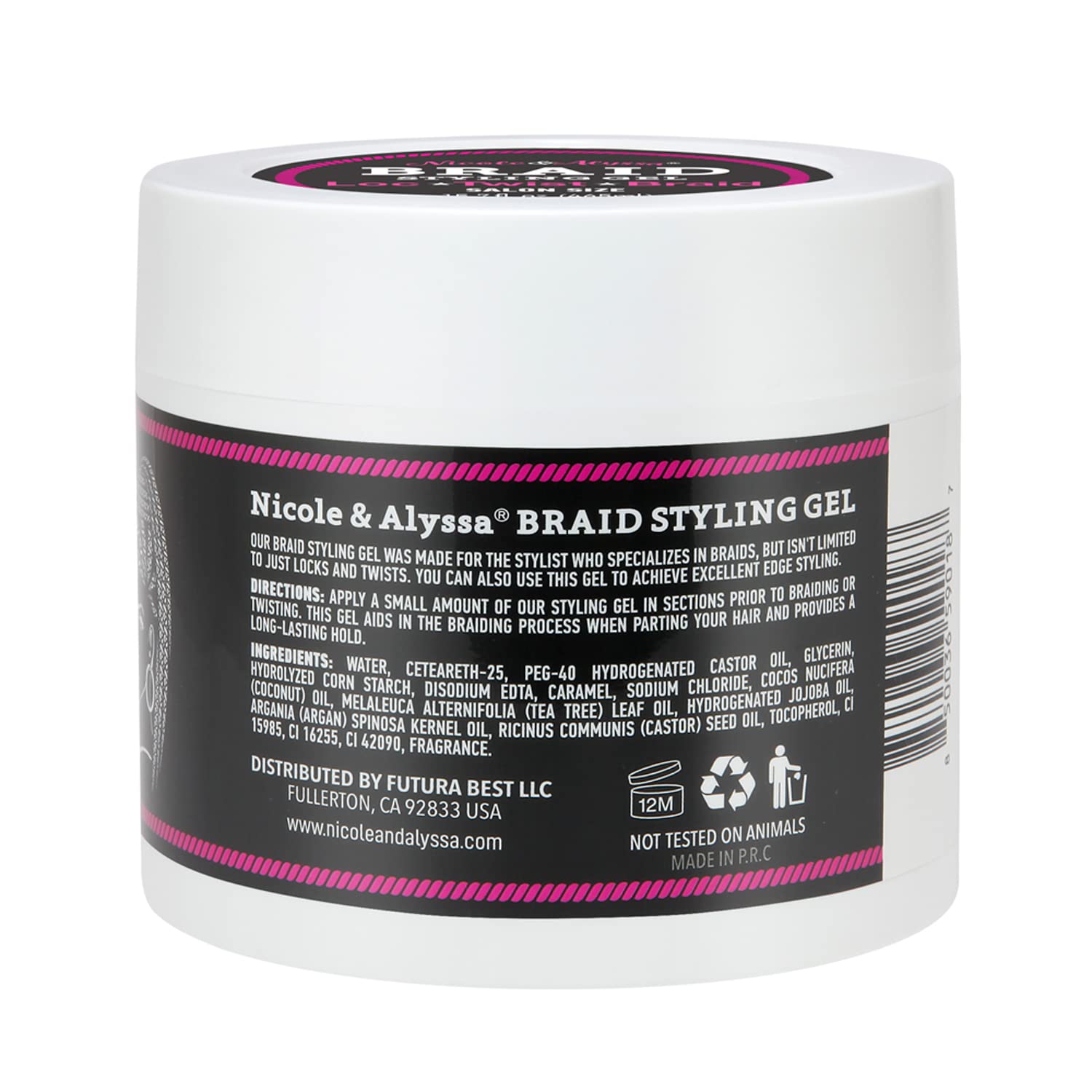 Get flawless, long-lasting braided styles with Nicole & Alyssa Braid Styling Gel. Specially formulated to provide extra hold without flaking or buildup, our braid gel is perfect for braids, locs, twists, and other protective styles. Infused with moisturizing ingredients to keep hair hydrated and frizz-free, this non-greasy gel tames flyaways and delivers a smooth, sleek finish. Whether you’re styling natural hair or extensions, our gel makes braiding easier and keeps your look intact all day.