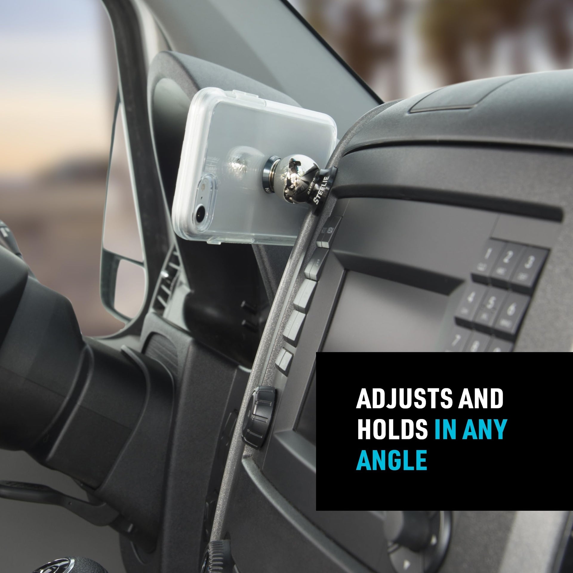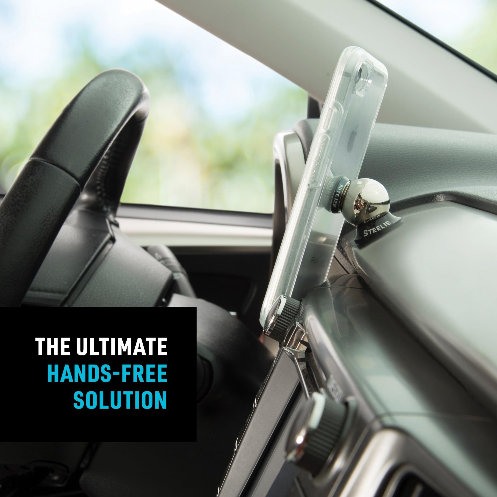 The beauty of the Steelie Dash Mount Kit is in its simplicity. Using trusted Steelie magnetic mounting technology, this popular phone mounting system lets you be hands-free so you can keep your focus safely on the road. This all-inclusive kit includes one Steelie Magnetic Phone Socket with 3M VHB adhesive, one Steelie Dash Ball with 3M VHB adhesive, an alcohol prep pad, and easy installation instructions. The 3M VHB on the Dash Ball allows it to be secured to just about any smooth, hard, flat or vertical surface in your vehicle. The Magnetic Phone Socket also uses 3M VHB, so it adheres steadfastly to your phone or rigid case, but can be removed if you get a new Apple iPhone, Samsung Galaxy, Google Pixel, or other phone or case. The socket features a powerful neodymium magnet and a smooth silicone ring that articulates with the steel ball on the Dash Mount. This allows your device to be tilted and viewed in landscape, portrait, and everything in between. This design ensures the phone stays securely in place, until you detach it from with a simple twist or tug. Speed bumps, potholes, quick turns are no match for Steelie's magnetic holding power. Because of its fumble-free, secure design, the Steelie Phone Mounting kits are legal in all 50 United States. Plus, when you reach your destination and detach your phone, the Magnetic Phone Socket on your device means you can still attach it conveniently to other metal surfaces: refrigerator doors, metal shelving, other Steelie Mounts, and more. Steelie neodymium magnets are safe for use with mobile devices but should be kept away from magnetically sensitive objects like credit cards, pacemakers or computer hard drives.