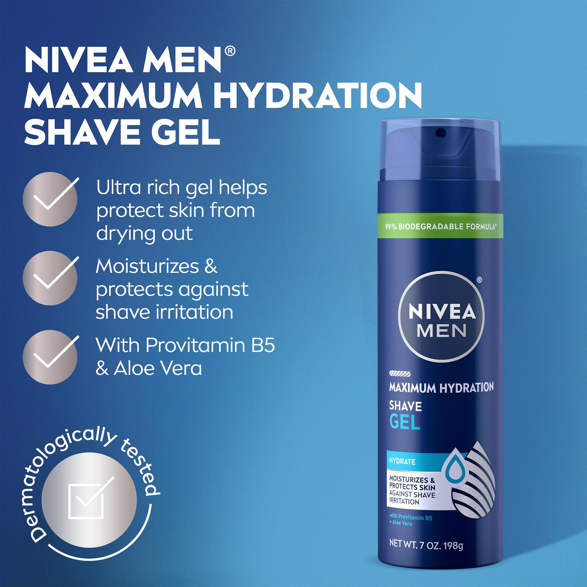 NIVEA MEN Maximum Hydration Shave Gel with Aloe Vera and Provitamin B5, 3 Pack of 7 Oz Cans