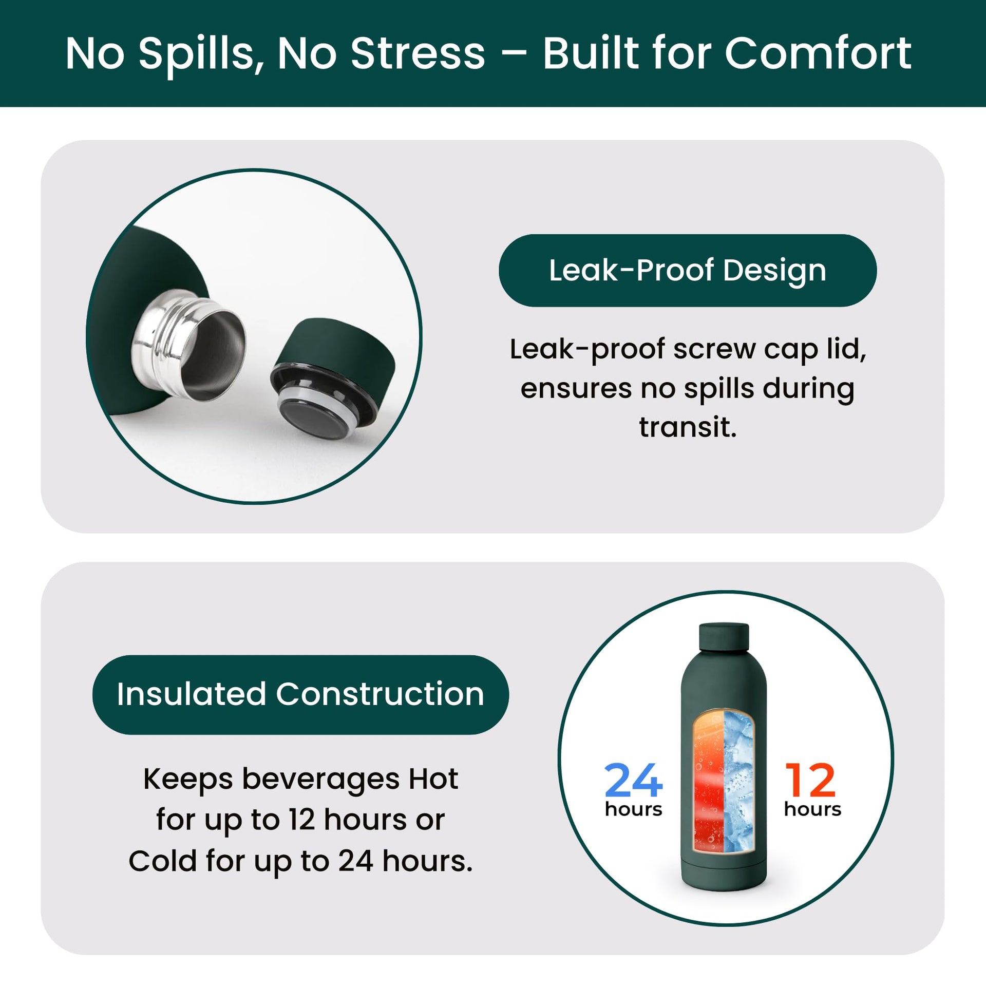 NOBL Stainless Steel Water Bottle,17 oz, 500 ml, Double Wall Vacuum Insulation, Sealed Thermos Bottle Keeps Drinks Cold 24 Hrs & Hot 12 Hrs, Leak