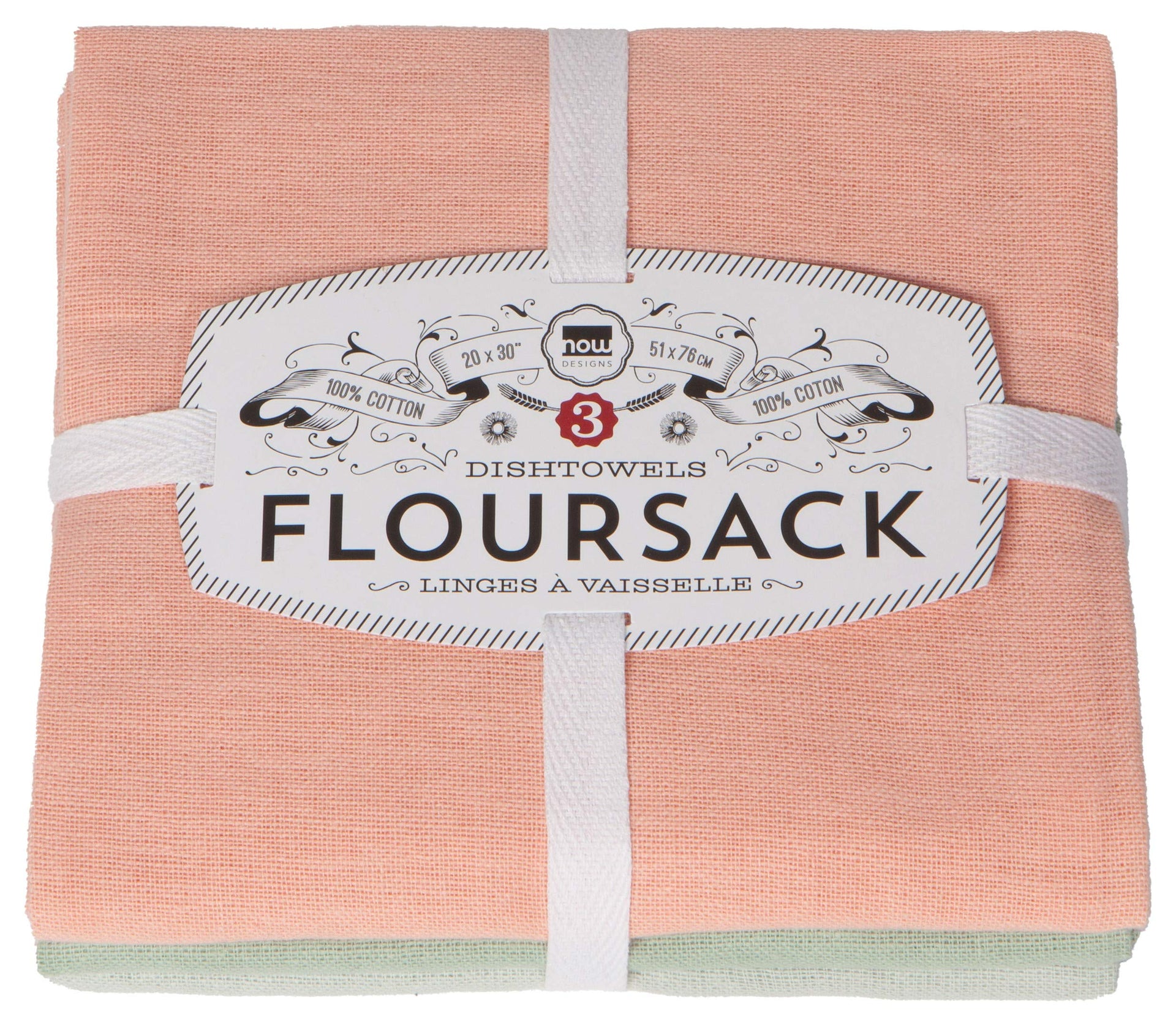 Welcome the delicate, morning tones of dawn, eucalyptus, and mist gray to refresh your kitchen with this beautiful 3-pack of hard-working Flour Sack Towels. Generously sized and delightfully designed, this towel is a nod to the generations of homemakers who repurposed high-quality grain and flour bags into all-purpose towels. Now Designs' Flour Sack Towels seek to echo the practicality of the cherished flour sacks of years ago while infusing a twist of bright colors and patterns for the modern kitchen. From glassware to pasta pots, these ultra-absorbent cotton flour sack kitchen towels speed up drying time. The thin, loose weave provides a lint-free finish as an ideal companion for delicate stemware and treasured dishes. The towels also dry salad greens or other fruits and veggies with ease. Their liberal size lines a large bowl or basket well, and they drape beautifully over bread dough as it rises. Keep one or two handy by the sink or stove-just like Grandma did-to handle everything from wet hands to warm pots. When you're ready to share your love of these versatile towels, they come bundled in giftable sets wrapped in baker's twine for charming presentation. Or swaddle a bouquet of fresh flowers and dress up a bottle of wine in a patterned flour sack towel as a thoughtful hostess gift. These large, multifunctional towels enhance your kitchen and beyond. The bright colors and patterns add vibrancy to your counters and bring extra style to your tabletop as a place mat or folded as a trivet. A simple machine wash and dry refreshes your towels, and you can count on them not to shrink as you revel in the softness that grows with every spin through the laundry. The beauty and practicality of these Now Designs flour sack towels is sure to win over culinary masters and kitchen novices alike.