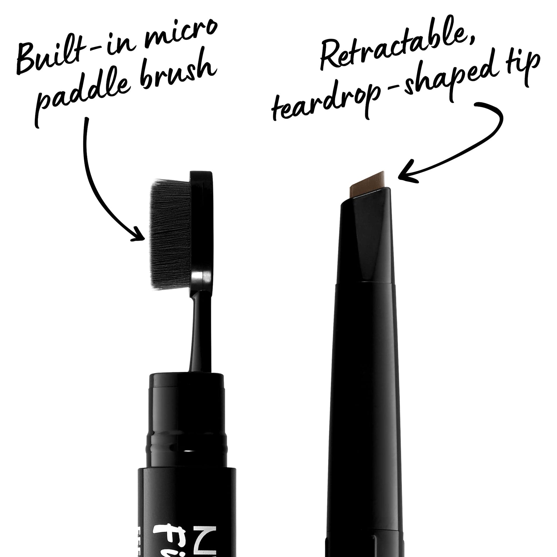 • Innovative Paddle Brush To Style and Fluff: A first of its kind brow pencil featuring a smooth, waxy pomade for shading, and a tiny paddle brush for fluffing and blending