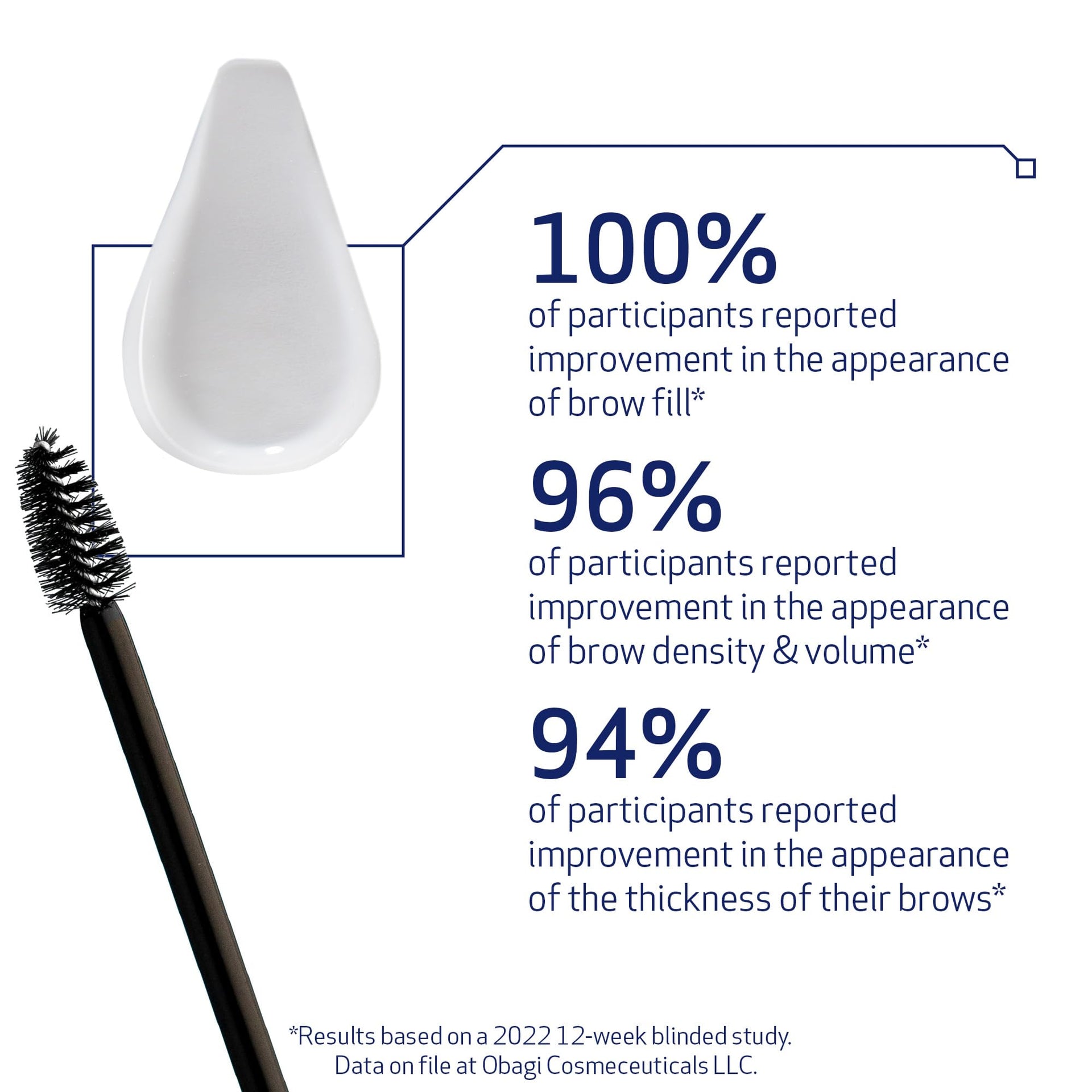 • Shown in Consumer Studies to Be Effective: After 8 weeks 96% of participants showed visible improvement in brow density & volume, 100% showed visible improvement in brow fill and 85% showed visible improvement in overall healthy appearance of brows in a 2022 12-week blind study