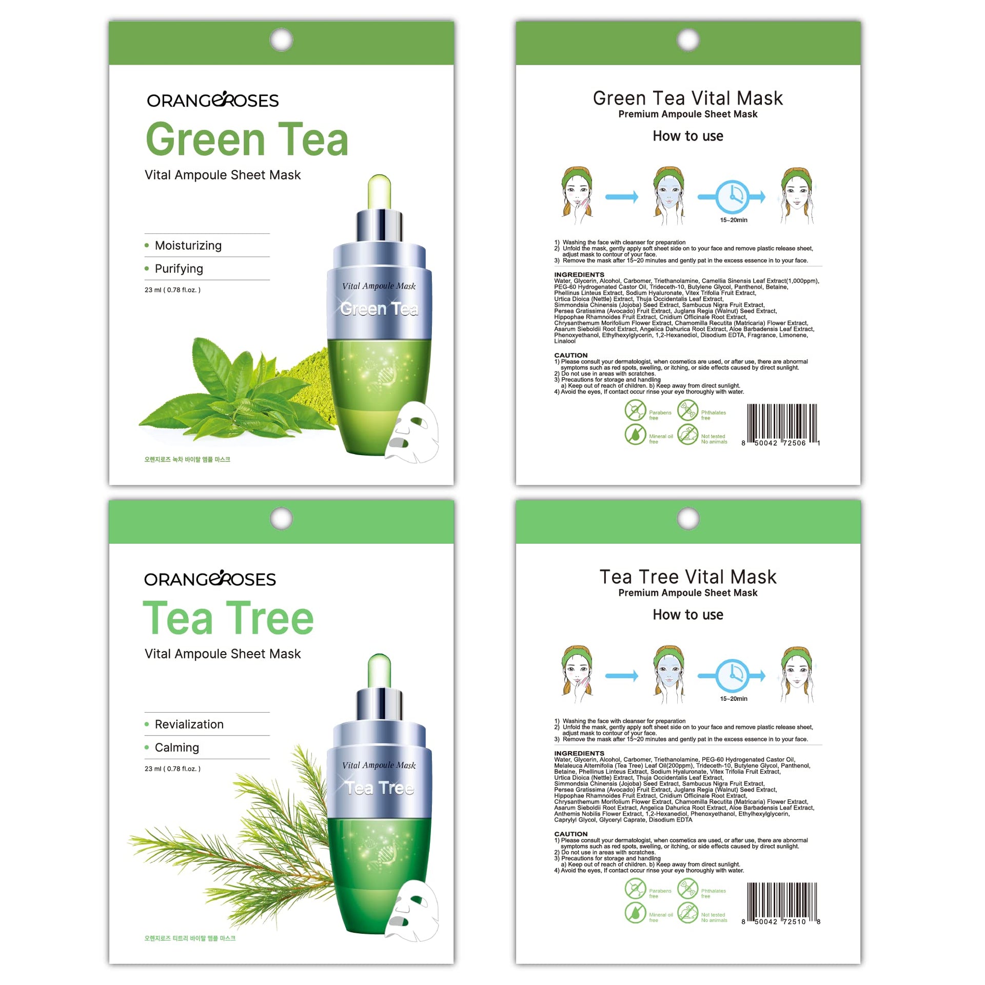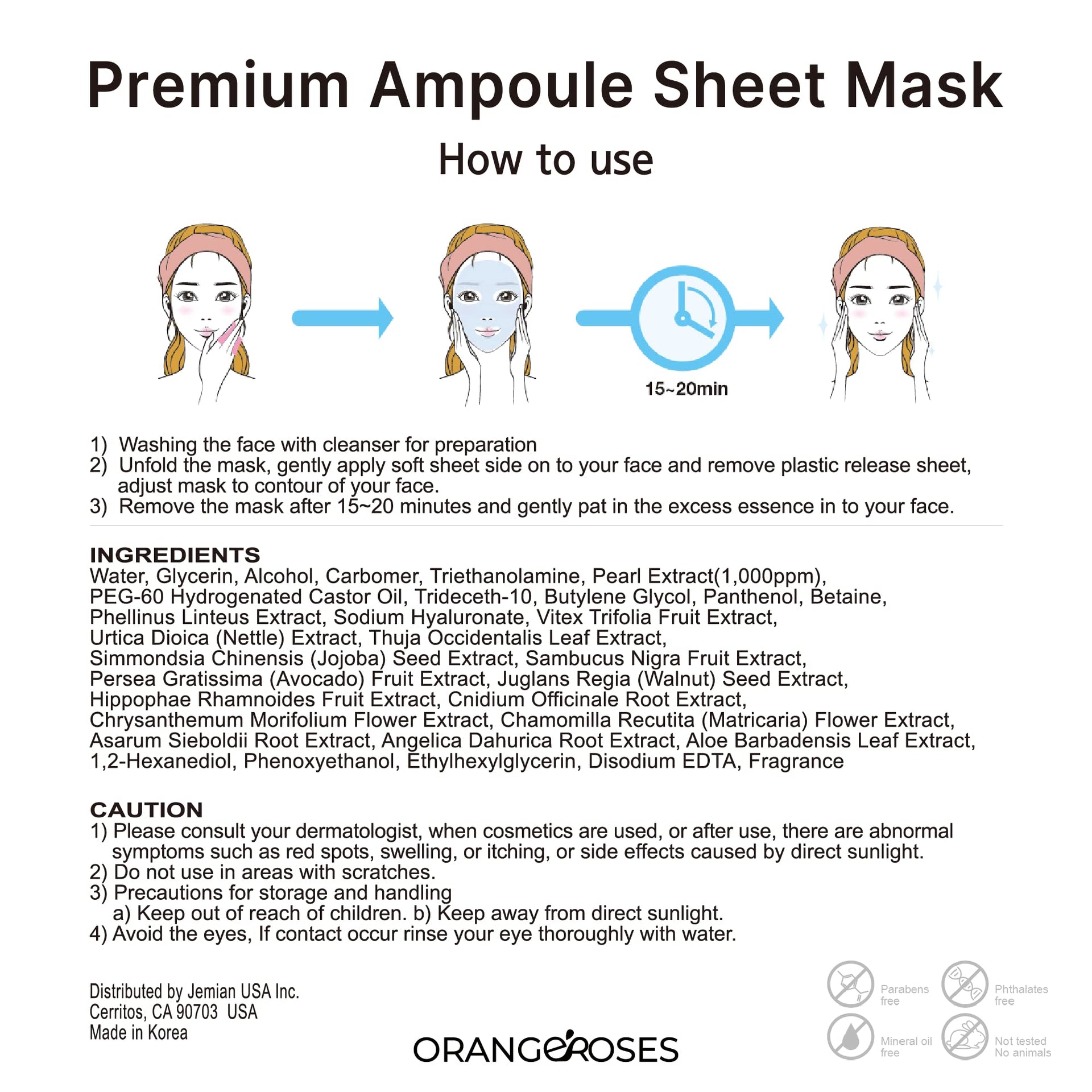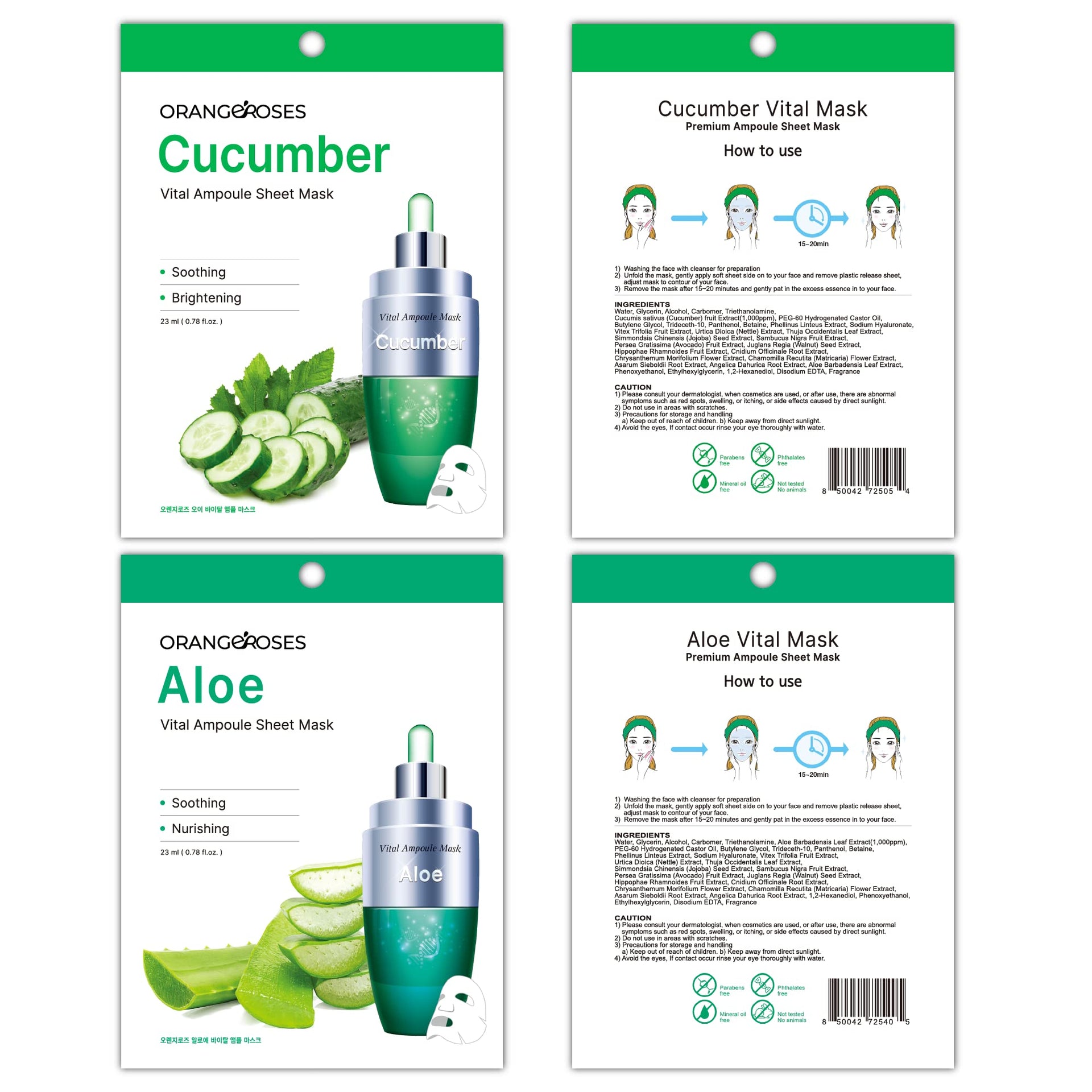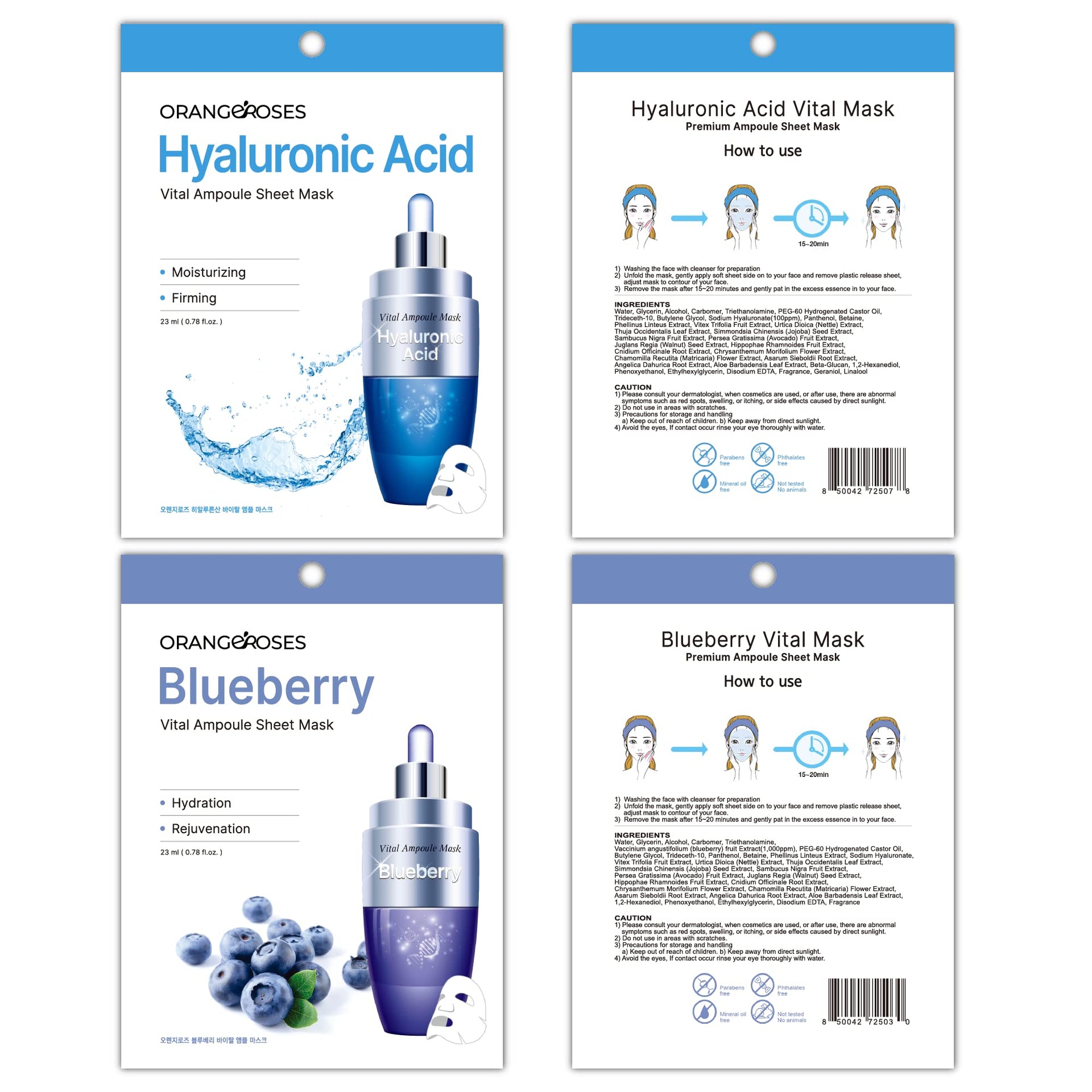 Details: ORANGEROSES 30 Combo Pack Vital Ampoule Full Face Facial Sheet Mask, [ 10 Types x 3pcs ] 1. 10 Types : (1) Aloe (2) Blueberry (3) Collagen (4) Cucumber (5) Green-Tea (6) Hyaluronic Acid (7) Pearl (8) Royal-Jelly (9) Tea-Tree (10) Vitamin 2. Premium Korean Mask with Release Paper for Easy & Comfortable Application, Skincare Facial Mask Set for Women, Men 3. Do not Contains Chemical such as Paraben, Silicon, Mineral Oil, Artificial Color, Ethanol. 4. 100% Made in Korea for Best Quality