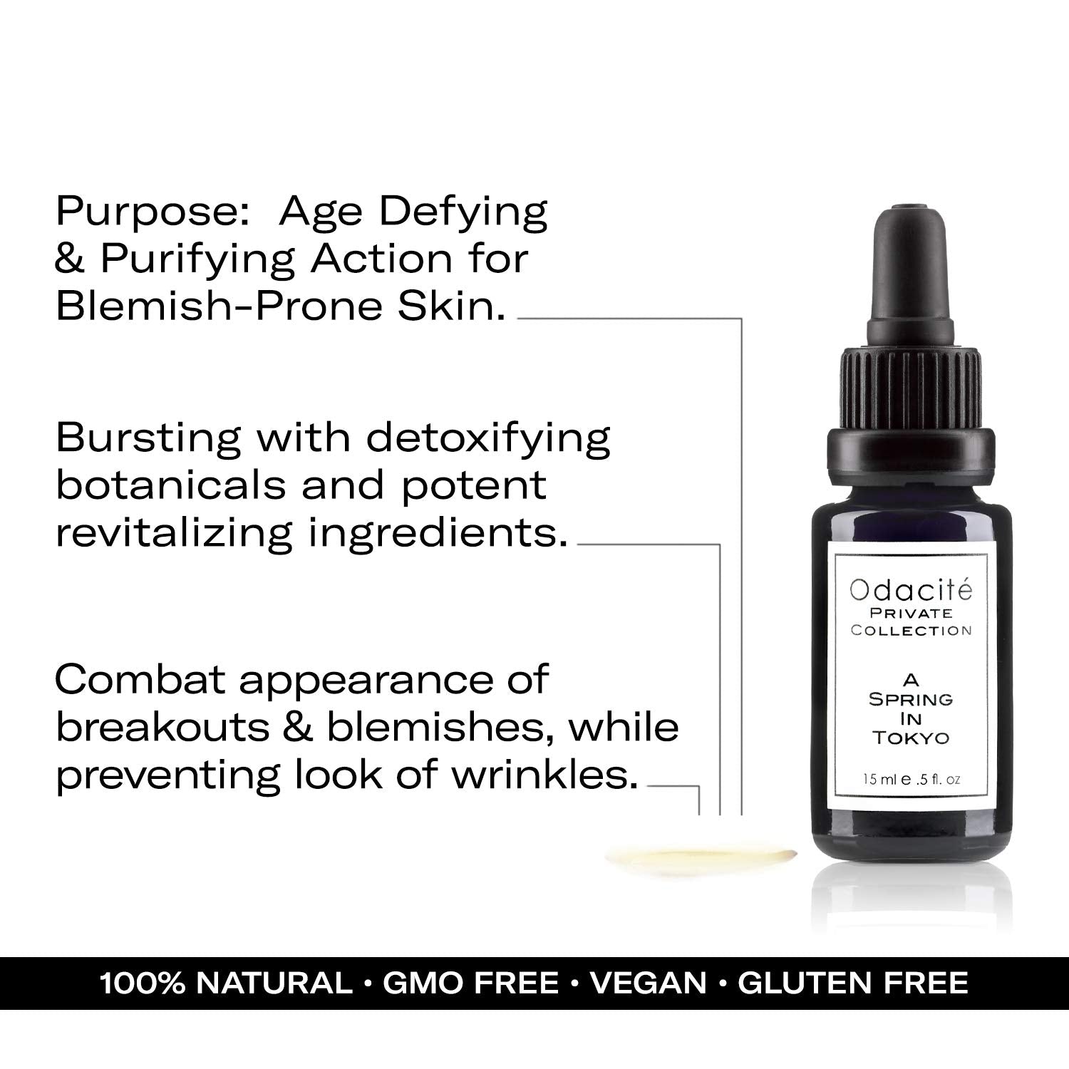 • Powered by Detoxifying Botanicals: Odacité A Spring in Tokyo is an age-defying and purifying serum that combats breakouts while soothing the look of premature wrinkles. Any skin type in need of deep revitalization, especially combination and blemish-prone skin, will become invigorated with spectacular freshness. 0.5oz bottle.