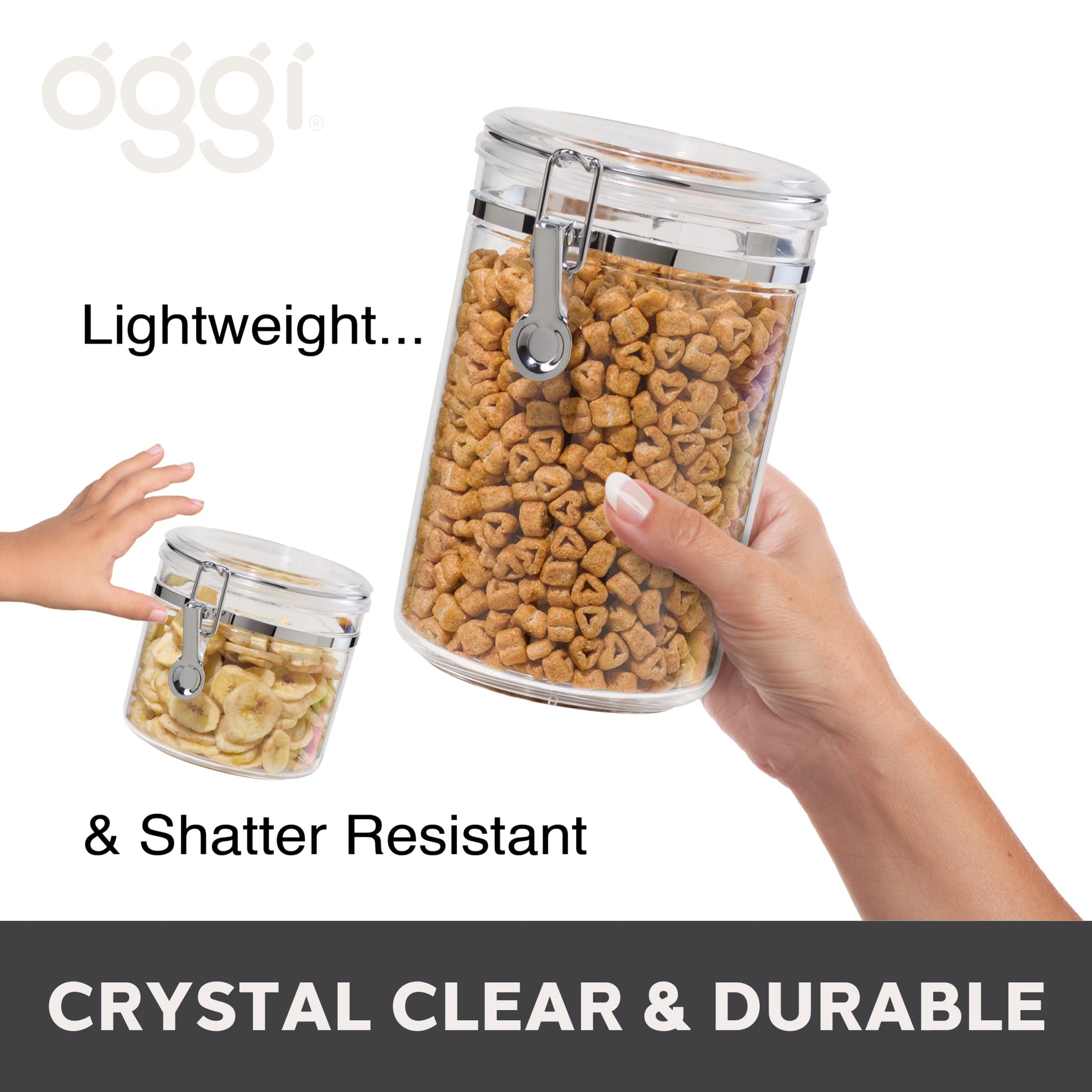 Oggi 4pc Clear Canister Set with Clamp Lids & Spoons - Airtight Food Storage Containers, Ideal for Kitchen & Pantry Storage of Bulk, Dry Food…
