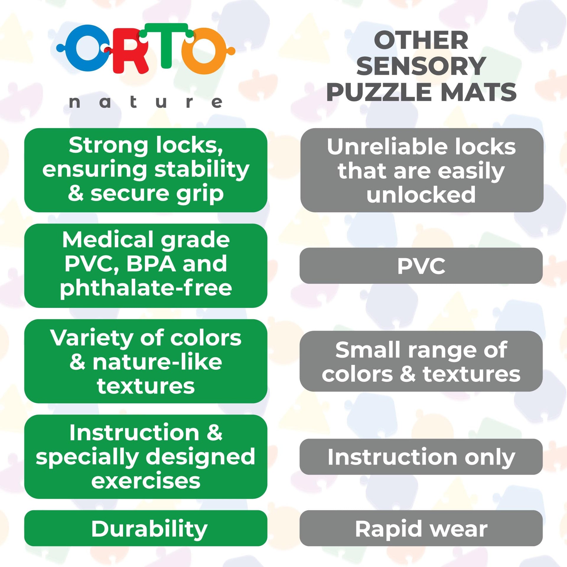 - 🧩 PRACTICALITY: The structure of material of Ortonature mats allows it to maintain the original form - there is no shrinkage or deformation. Soft flooring for activity. Easily cleaned up and stored. Shatter proof. Non-Slip. Can be used on multiple floor surfaces.