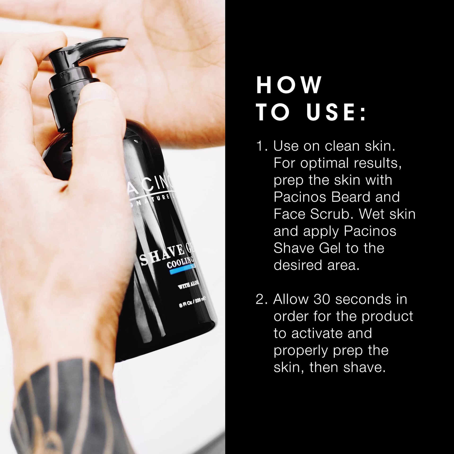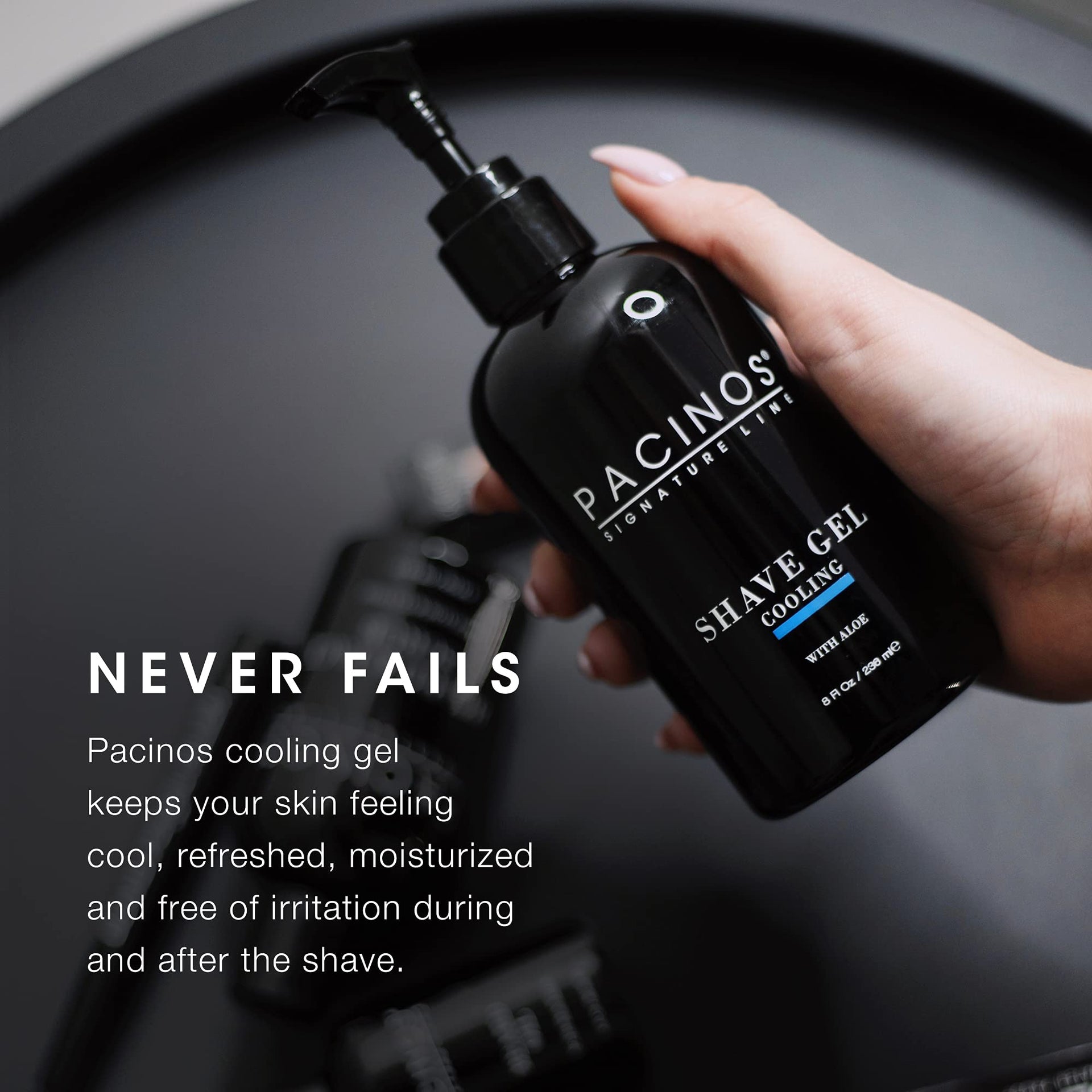 • COOLING: Pacinos cooling aloe vera shave gel keeps your skin feeling cool, refreshed, moisturized, and free of irritation during and after each shave.