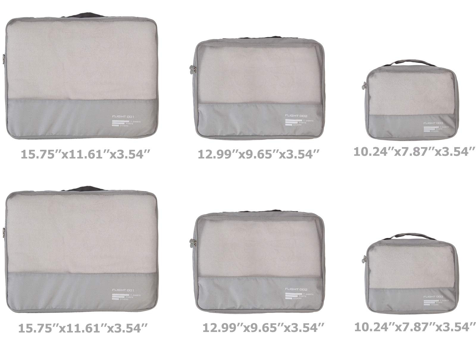 - 6 Travel Packing Cubes:Large(15.75’’x11.61’’x3.54’’)x2 +Meduim(12.99’’x9.65’’x3.54’’)x2+Small(10.24’’x7.87’’x3.54’’)x2.