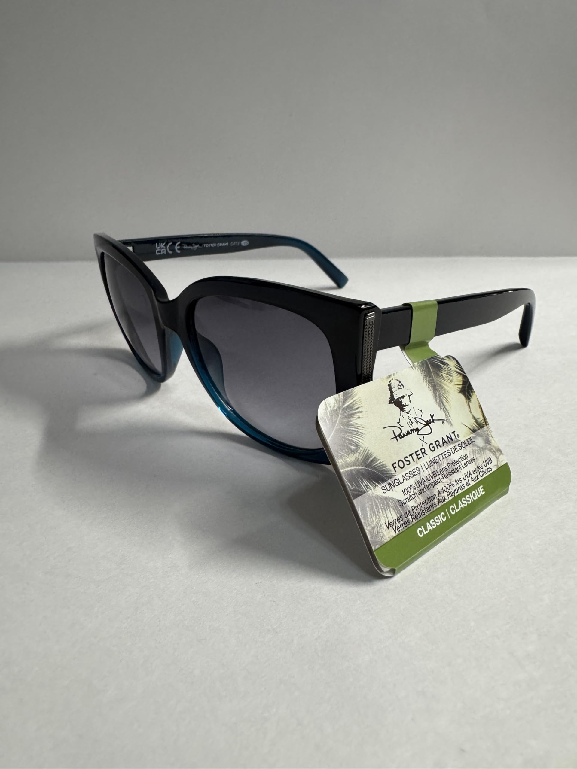 Make a bold fashion statement with these stunning Panama Jack Designer Cat Eye Sunglasses. These oversized women's shades feature a sleek black frame with subtle blue accents that add a touch of sophistication to any outfit. The gradient lenses not only provide style but also offer excellent protection while transitioning smoothly from darker to lighter shades. The classic cat-eye silhouette brings a timeless yet contemporary appeal, perfect for those who appreciate vintage-inspired fashion with a modern twist. These sunglasses combine fashion-forward design with practical functionality, making them ideal for everyday wear or special occasions. The durable frame construction ensures these sunglasses will be your go-to accessory for seasons to come. Whether you're heading to brunch, the beach, or running errands around town, these Panama Jack shades will keep you looking effortlessly chic while protecting your eyes in style.