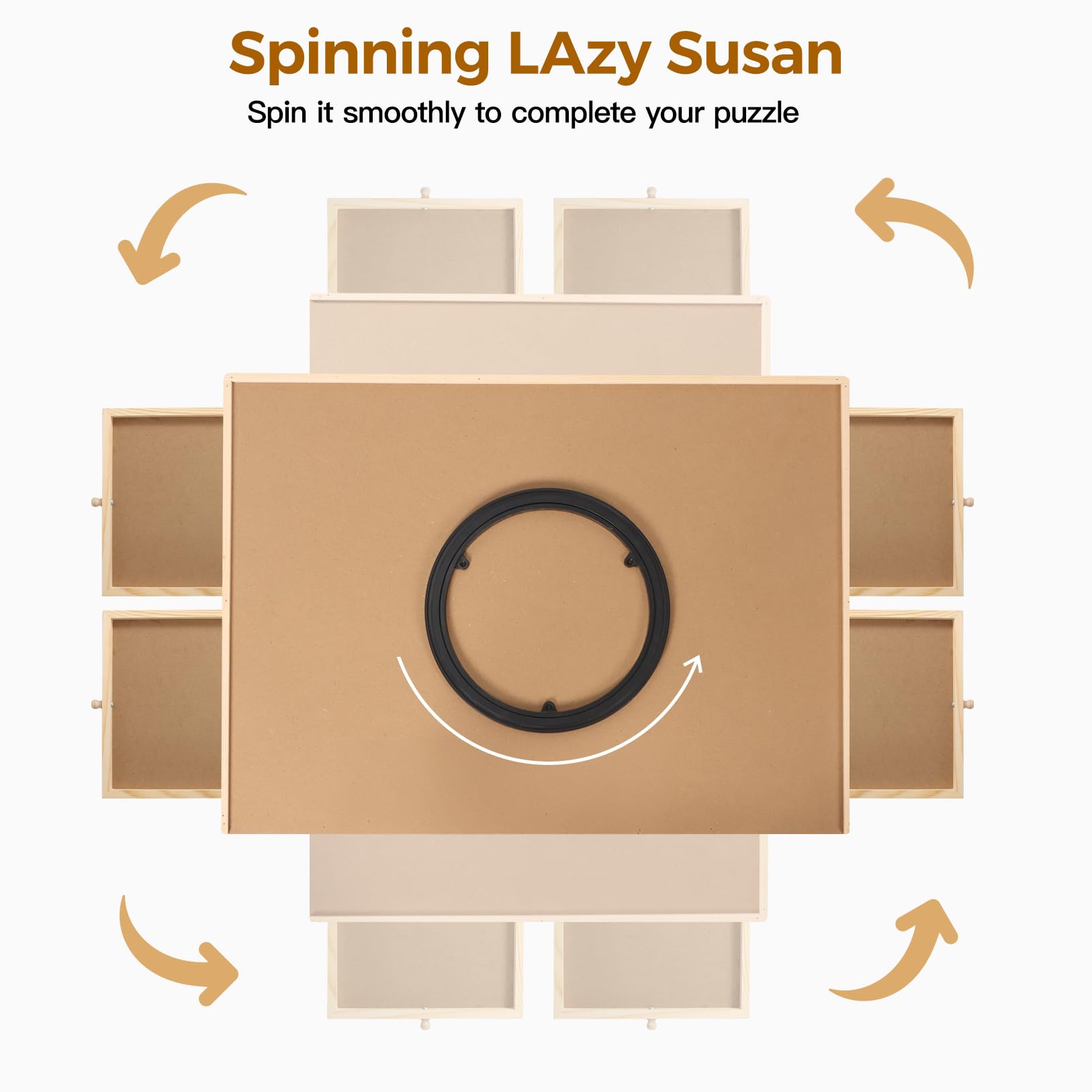 Panana Puzzle Locker 1000 Piece Rotating Board – 30"x22" Wooden Puzzle Table with 4 Drawers & Cover, Portable Lazy Susan Jigsaw Gift