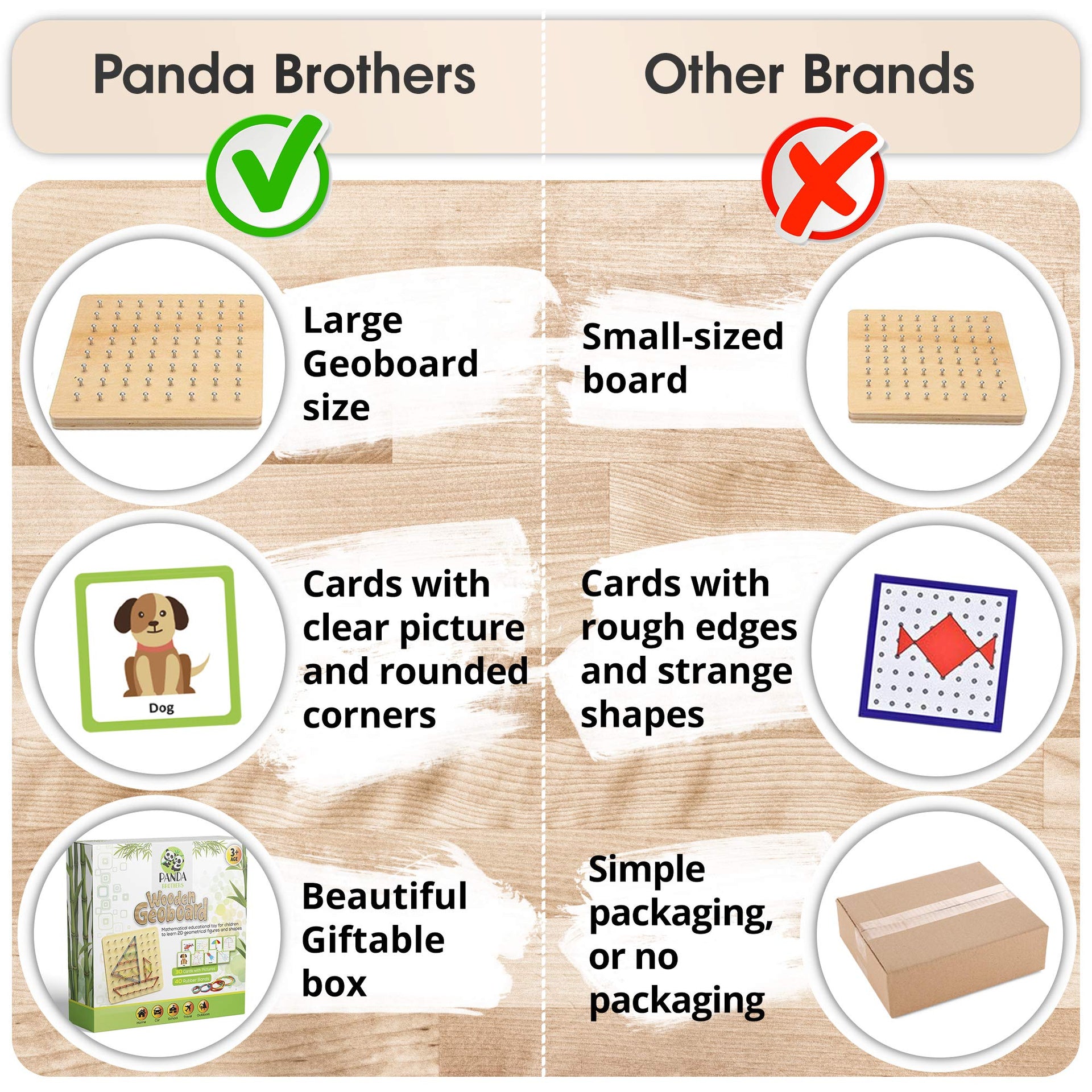 Panda Brothers Wooden Geoboard โ€“ Montessori STEM Toy for Kids Ages 3โ€“5, Includes 30 Pattern Cards & 40 Rubber Bands, Educational Brain Teaser
