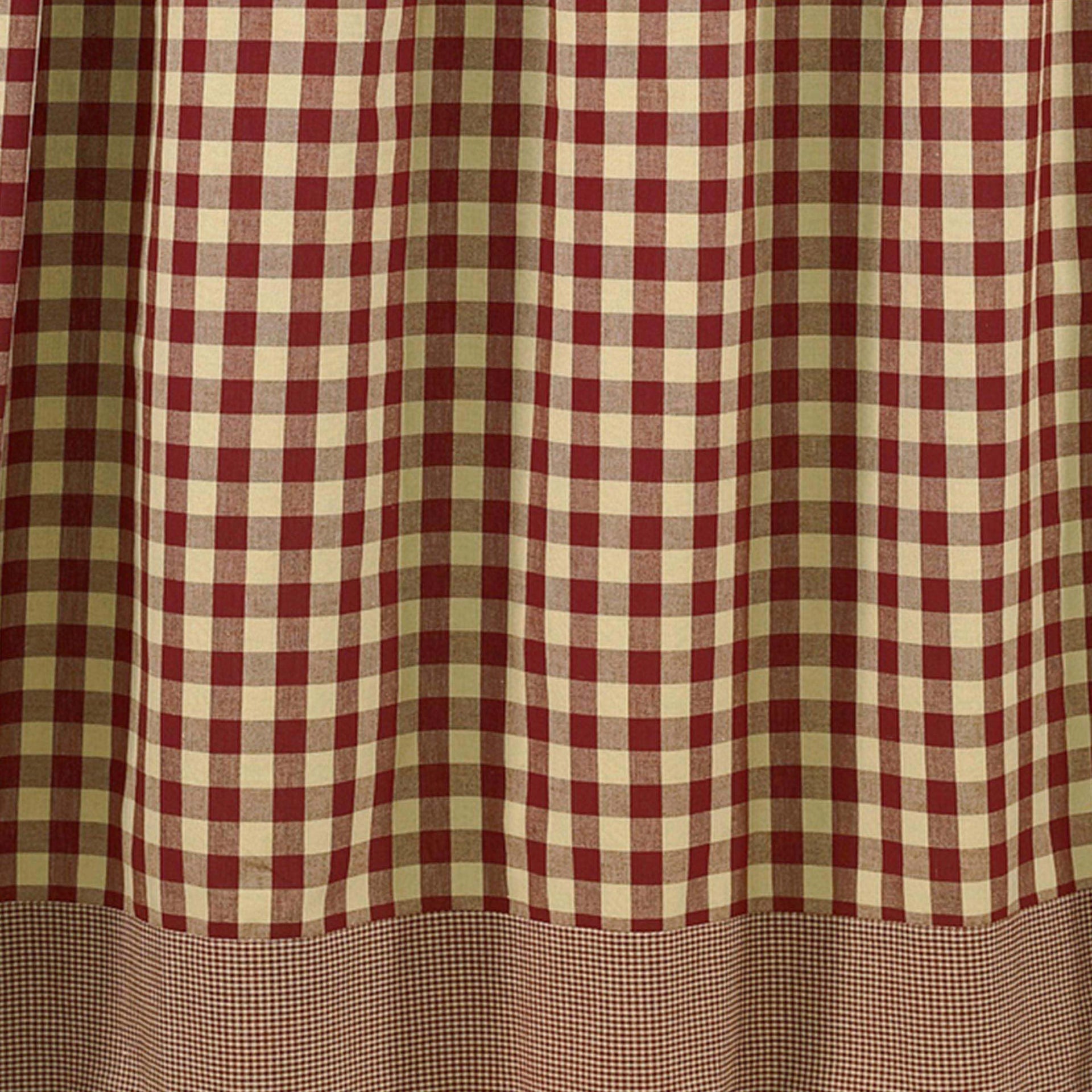 The York collection from Park Designs is available in wine, blue, & Sage. York is a pattern with a large check with a mini check border. The pattern are in the colors of wine & tan, blue & off white, and Sage & off white.