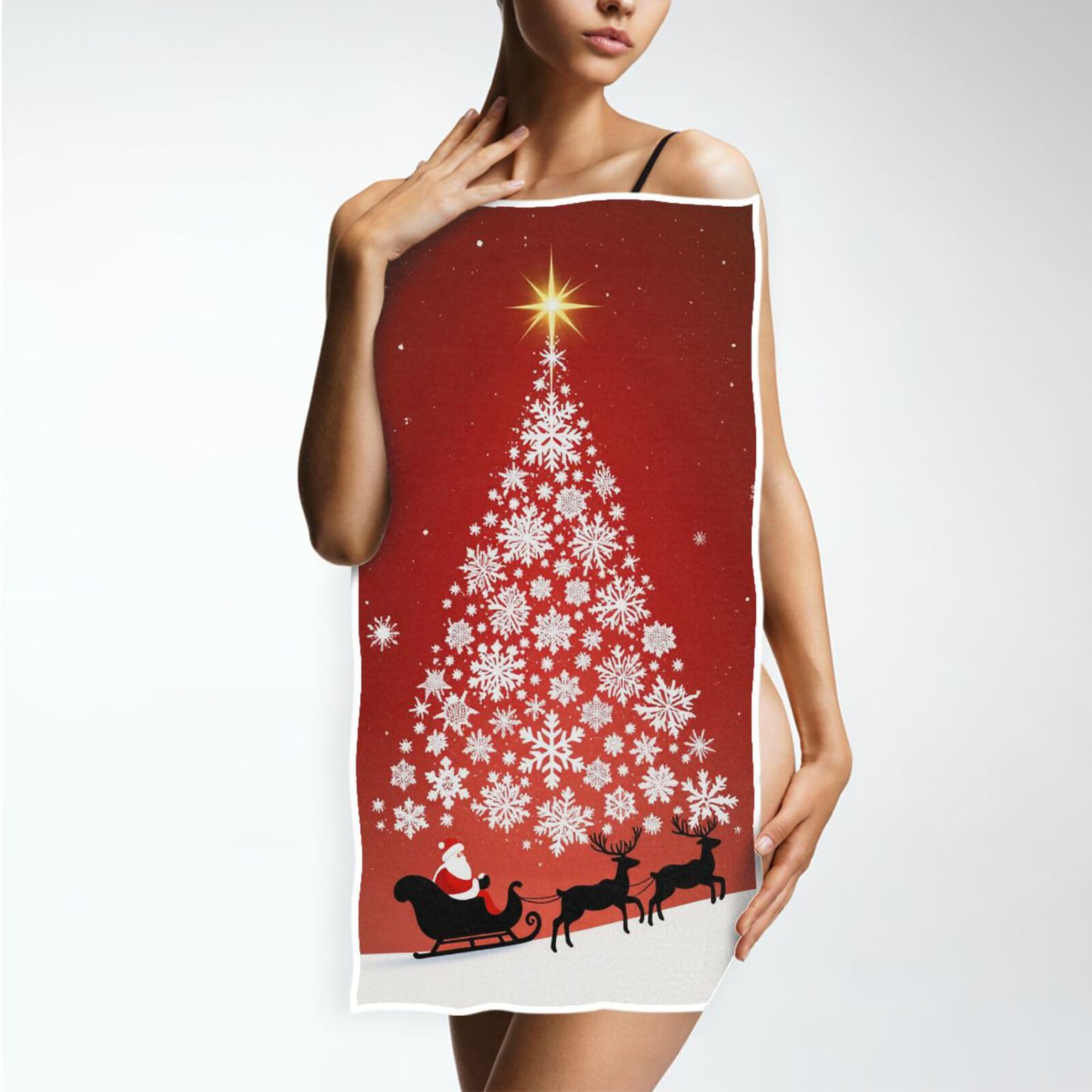 Pfrewn Santa Claus Sleigh Snowflake Tree Hand Towels 16x30 in Christmas Winter Bathroom Towel Ultra Soft Highly Absorbent Small Bath Towel Xmas…