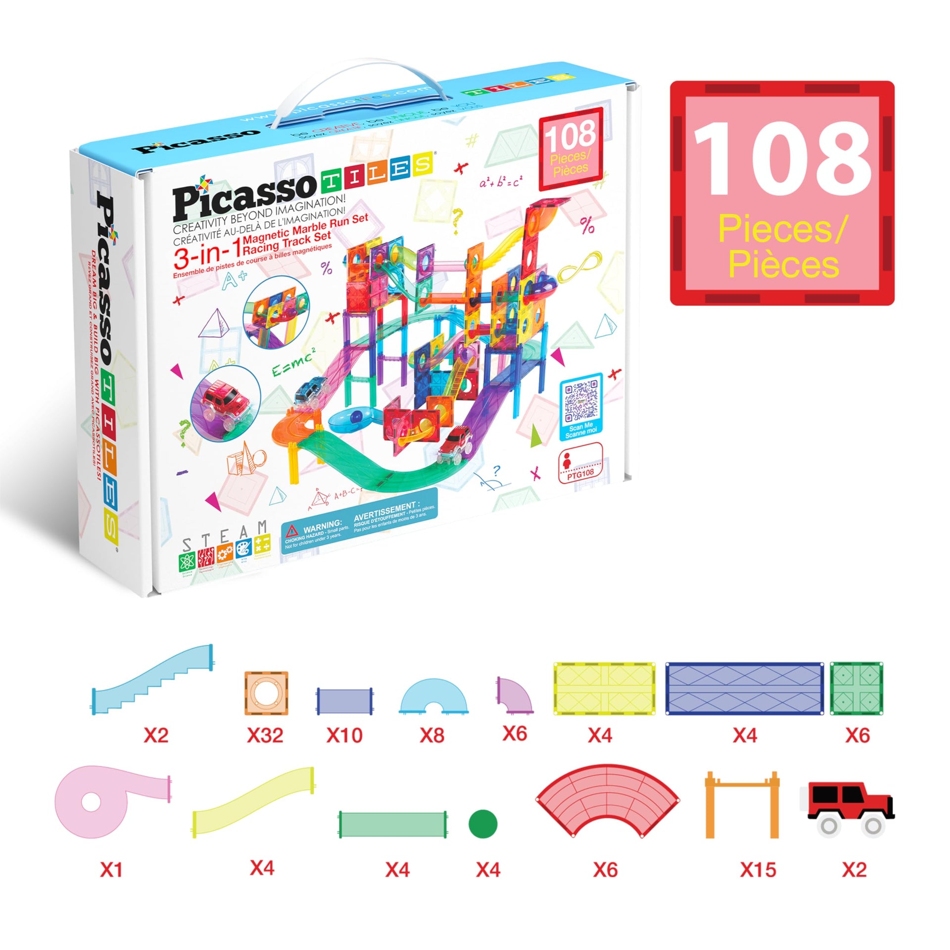 - THREE WAYS TO BUILD AND PLAY: Inspire kids creativity with a magnetic set that combines marble run towers, race track slides, and classic building tiles. Kids can switch between sliding cars, dropping marbles, or stacking structures. Keeping each play session exciting and fresh. Designed for children ages 3 to 8 to explore STEM concepts through varied, hands-on challenges.