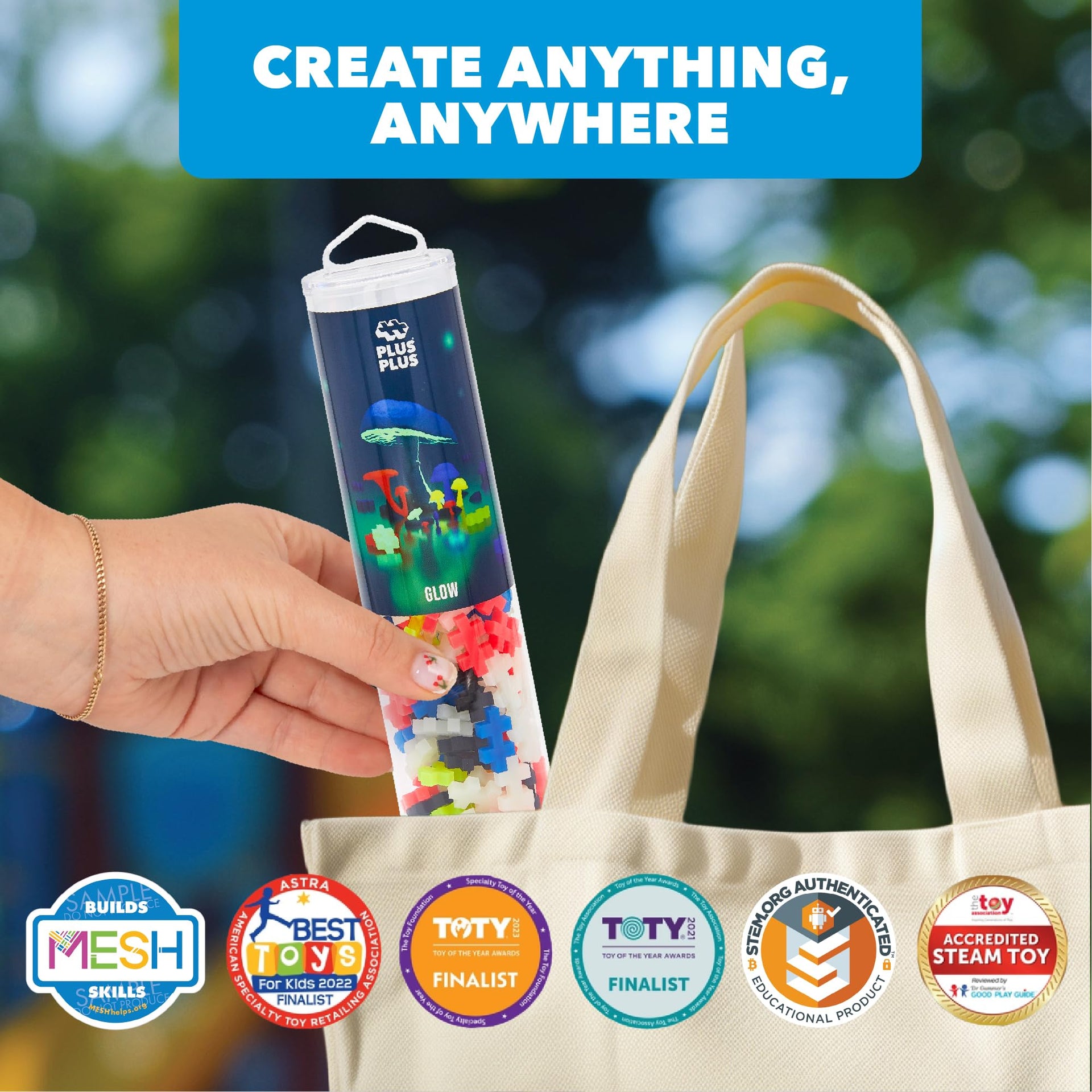 Plus Plus 240pc Interlocking Building Blocks – Glow in Dark STEM Connecting Toys for Kids, Open-Ended Classroom Mini Manipulatives