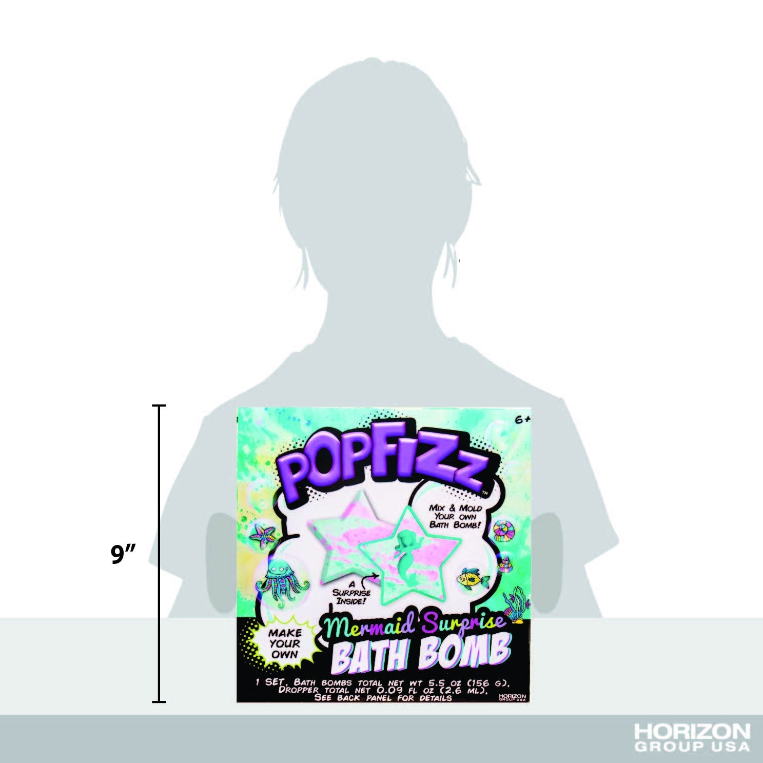 Make your own Pop Fizz mermaid surprise bath bomb Create a colorful, sparkling bath bomb to bring your bubble baths to the next level. Learn how to mix a single-colored or multi-colored bath bomb, add some essential oils for relaxation and a little coconut oil as a great moisturizer. Mold your bath bomb and when it's dry and ready, pop it in the water. Watch a fizzing, bubbling color explosion before your eyes as your mermaid figurine is revealed Sink into the ultimate relaxation As the ocean breeze essential oil fills the room. Recommended for ages 6 years and up.