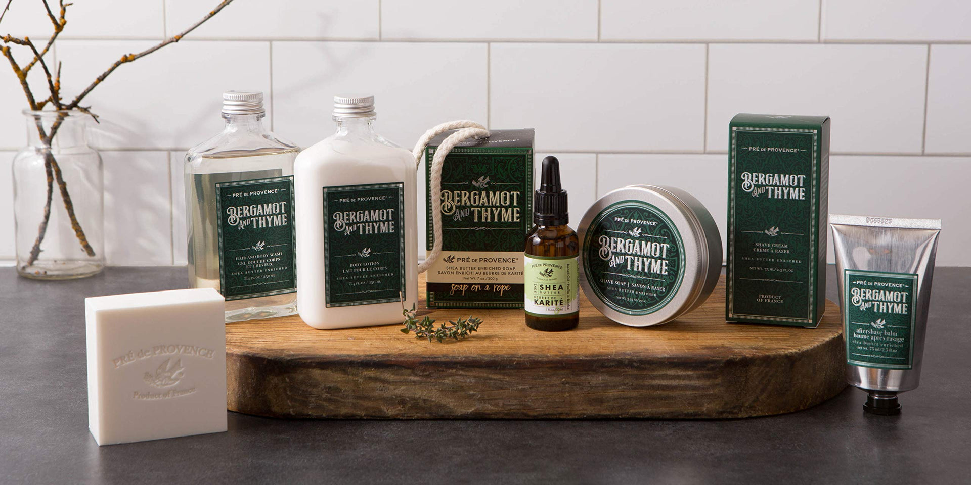 Pre De Provence has introduced a new men's line that you are going to love! Bergamot and Thyme provides a masculine scent while providing safe and nourshing products for your skin. This lightweight, quick penetrating lotion will quench your skin's thrist. Special ingredients of Shea OIl, Aloe, Coffee Seed Extract and Ginseng Root all work together to perfectly nourish your skin, while soothing, hydrating and moisturizing. Apply generously all over the body after showering or whenever skin feels dry.