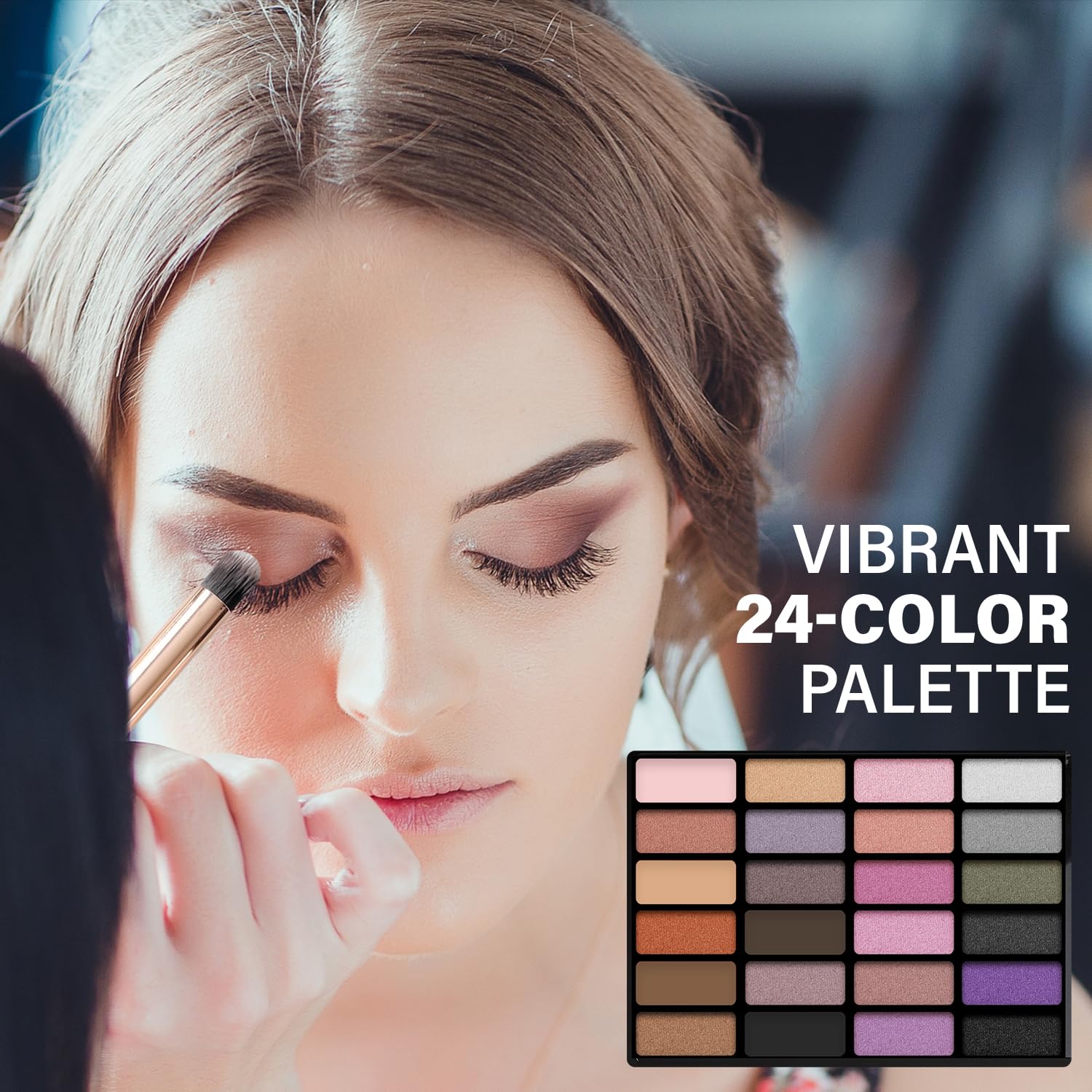 Profusion Cosmetics 24 Shades Eyeshadow Palette - Complete Eye Makeup Kit with Brow & Eyeliner Pencils, Dual Foam Applicator and Tweezers…