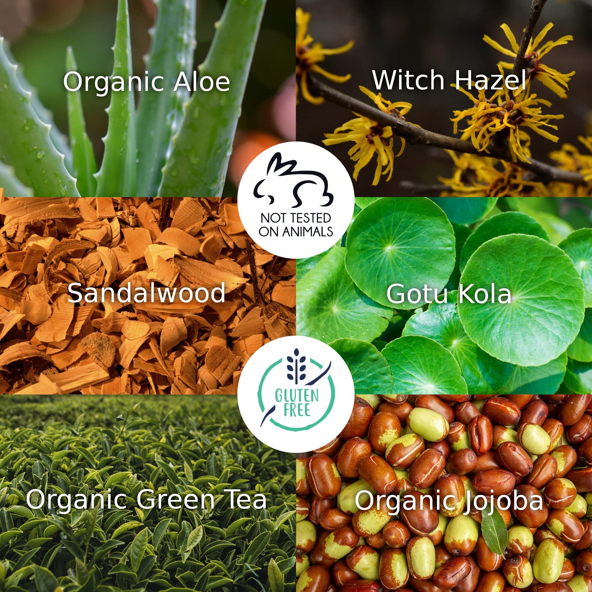 • PLANT-BASED FORMULA: includes Organic Green Tea, Organic Jojoba, Organic Aloe and Witch Hazel