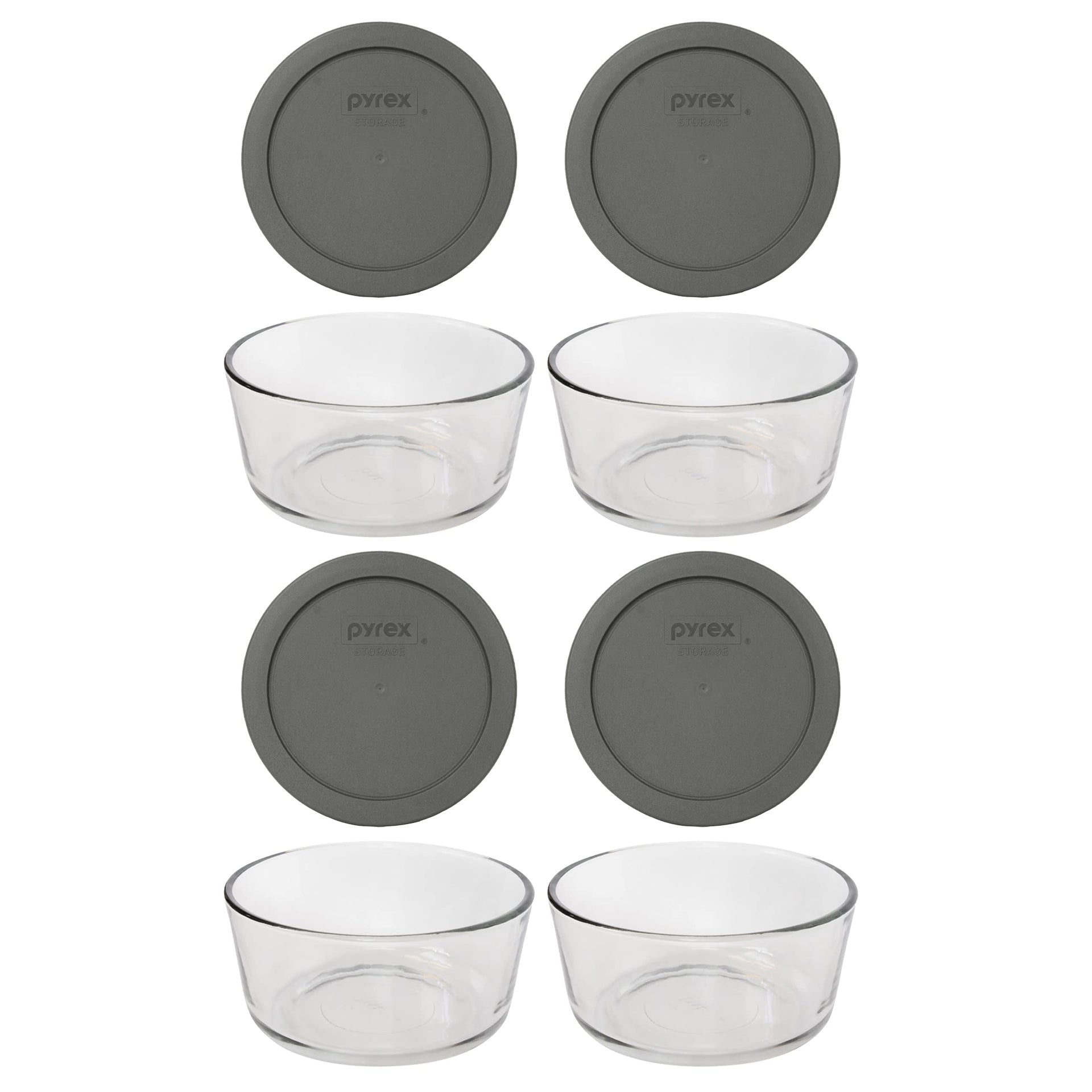 Pyrex 7201 4-Cup Glass Bowl & 7201-PC Puddle Gray Lid (4-Pack) - Made in USA
