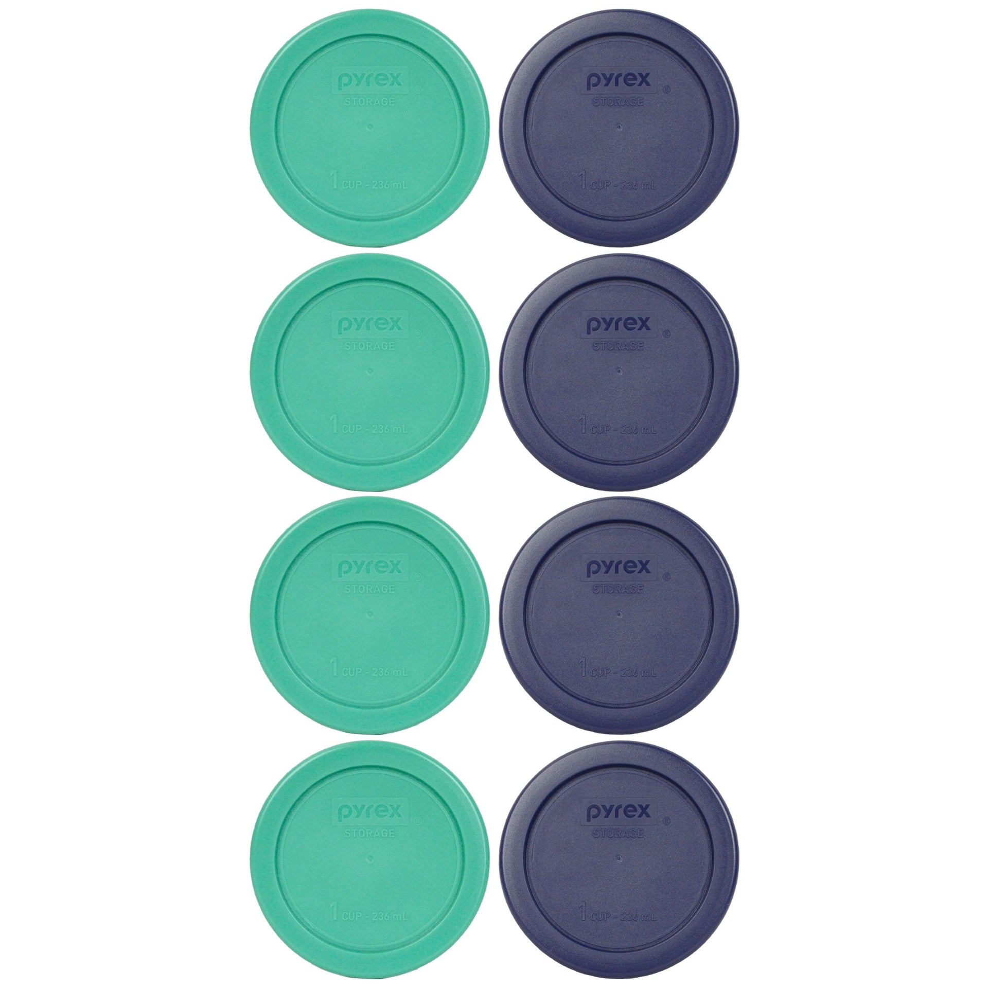 • Included: Pyrex 7202-PC 1-Cup (4) Green and (4) Blue Food Storage Replacement Lids - Made in the USA