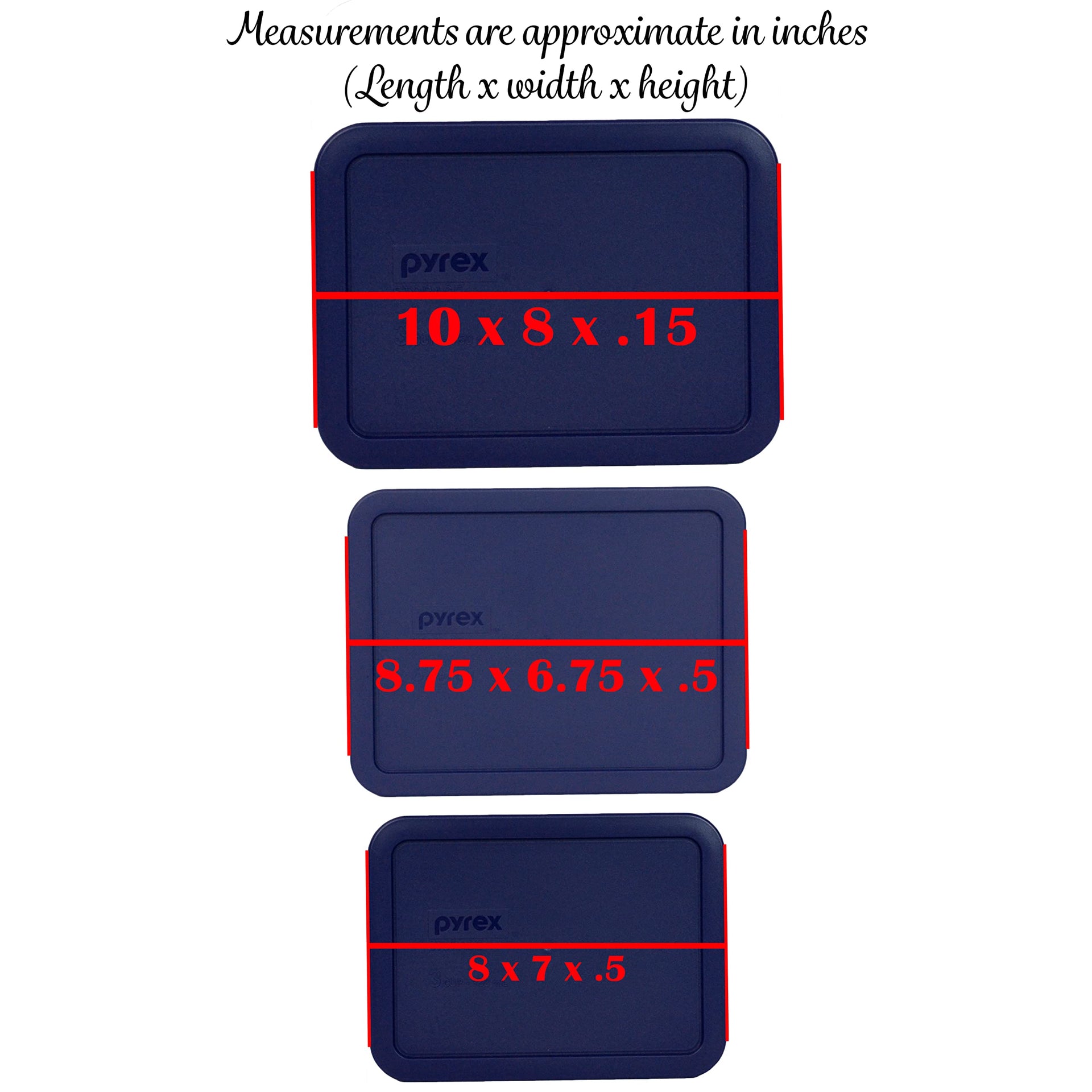 Pyrex 7212-PC 11-Cup, 7211-PC 6-Cup, & 7210-PC 3-Cup Blue Food Storage Replacement Lids - Made in USA