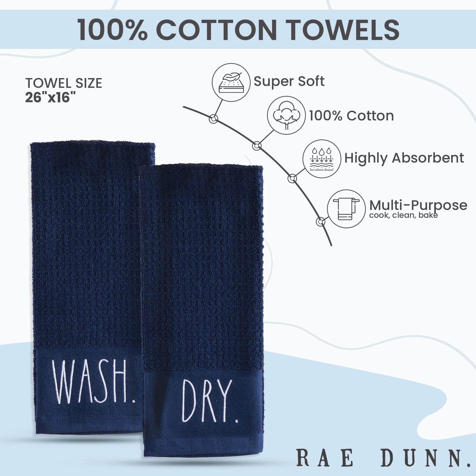 • Versatile Throughout Your House: Use these towels in your kitchen for drying dishes or hang them to accessorize your bathrooms. These towels are an easy way to add beautiful but simple décor and impress your guests with a Rae Dunn product.
