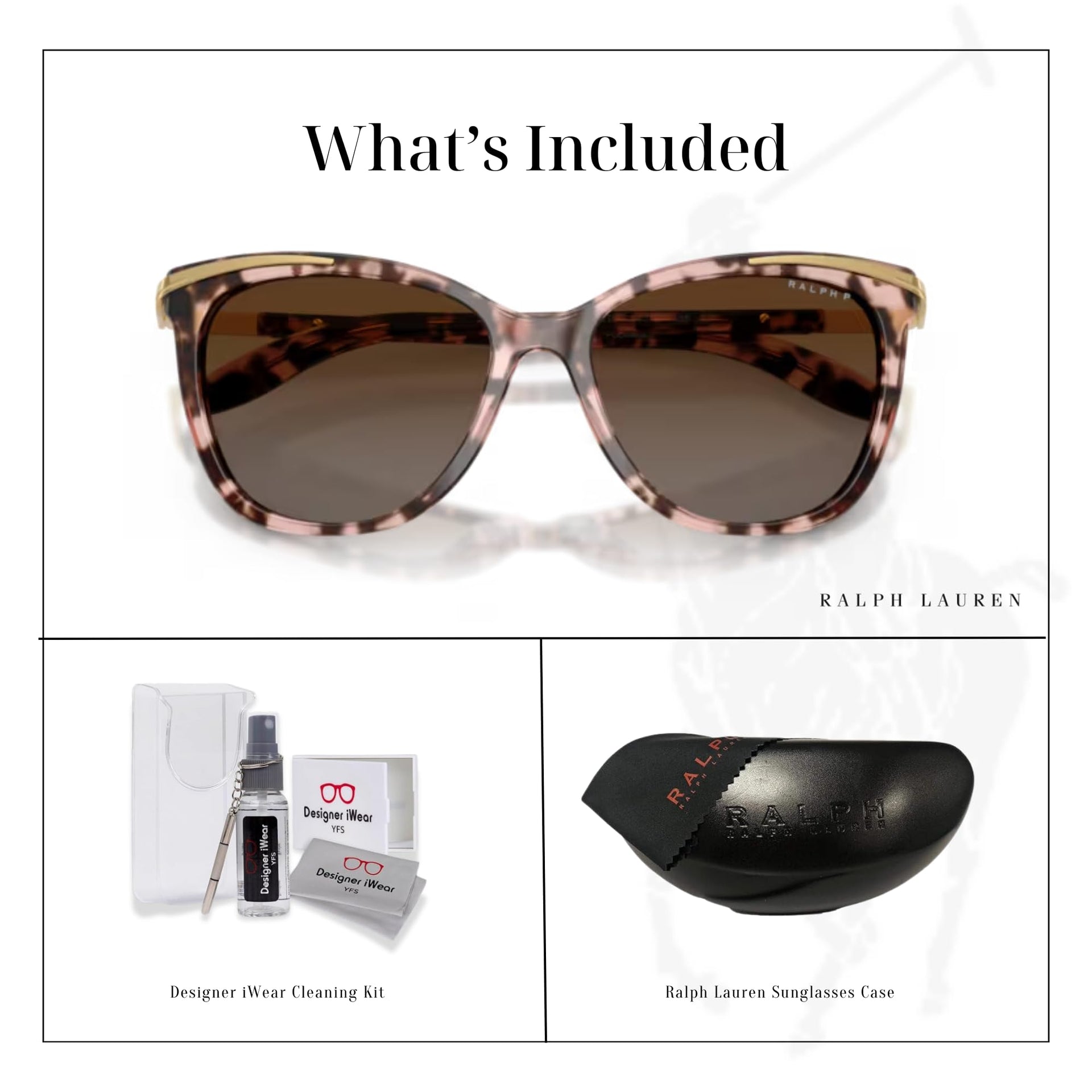 • [About the Frame] The Ralph Lauren RA5203 features a sophisticated pink tortoise full-rim cat-eye frame, crafted in Italy for superior style and quality. Designed for women who appreciate fashion-forward elegance, the unique pink tortoise pattern makes these sunglasses a standout accessory for any occasion.