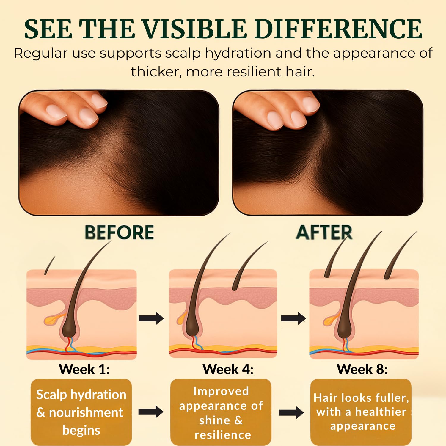 • Hydrates Scalp & Boosts Hair Shine - This batana oil for hair growth deeply moisturizes dry scalp and enhances softness and shine for dull, brittle hair. Suitable for curly, coily, and textured hair. Safe for color-treated hair.
