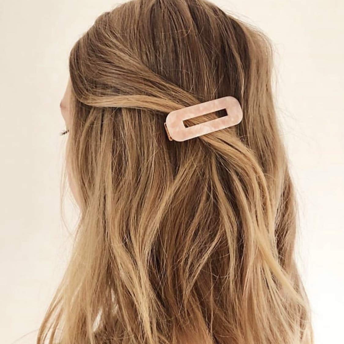 Description: A trendy collection of tortoise hair clips/barrettes. Selling 4 pieces as a set. Buy as the first image shows. Made with premium resin. Easy to hold hair. Details: Resin and zinc alloy, approximately 2.7" in length.