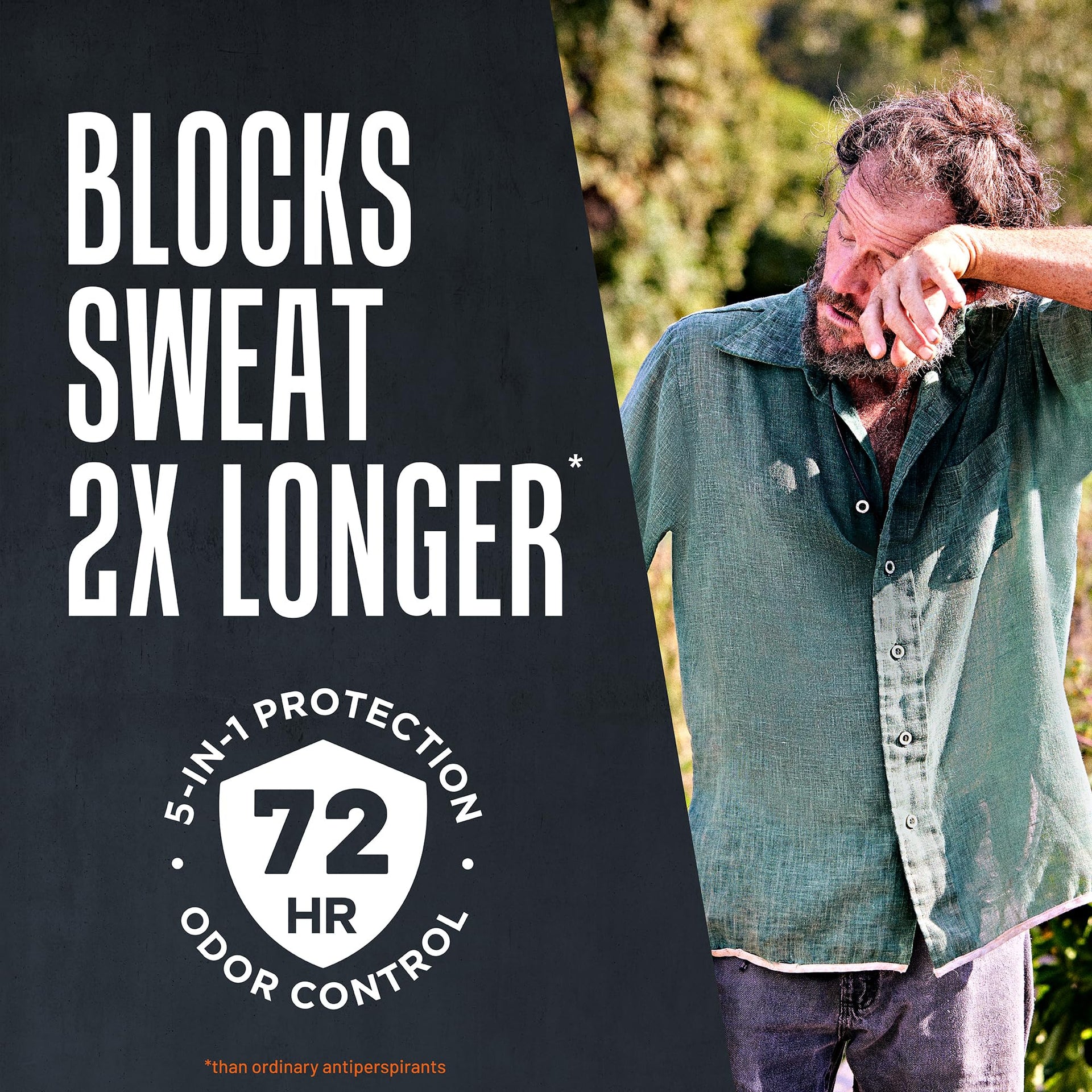 - BLOCKS SWEAT 2X LONGER: Our deodorant and antiperspirant for men blocks sweat twice as long as ordinary mens deodorant and ordinary antiperspirants formulas to help you stay dry and stay focused on the task at hand