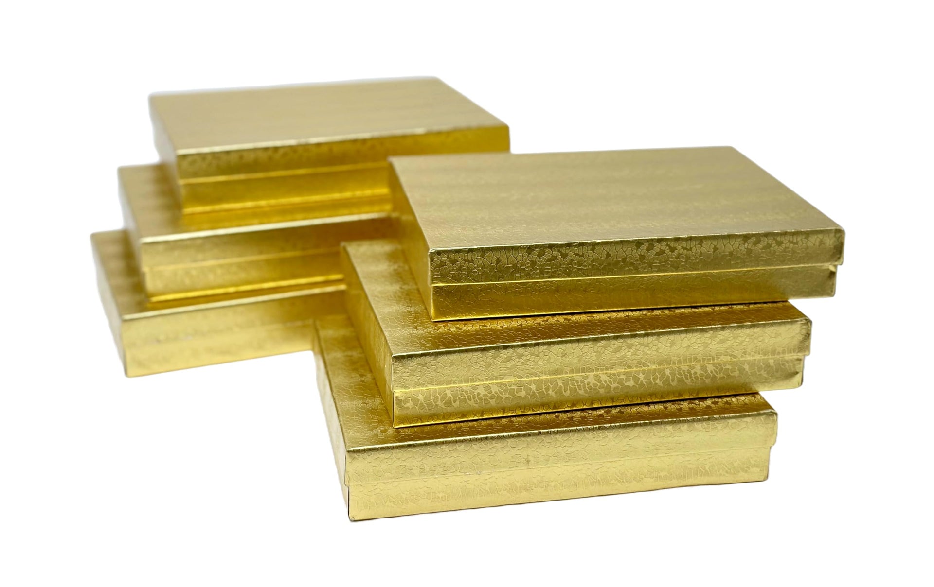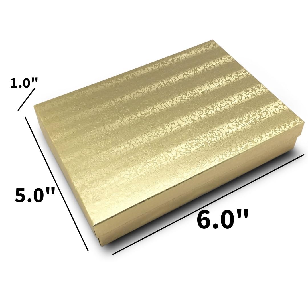 • 【QUANTITY】: Pack of 6, Gold Foil Jewelry Boxes. Our Stylish Gold Foil Jewelry Boxes are designed for safety and elegance. Ideal for from the Jewelry Necklaces, Bracelets, Pocket Watches, Charms, Earrings, and Brooch to the most substantial pendants. Each purchase includes 6 boxes, perfect for jewelry stores, crafters, or gift-giving
