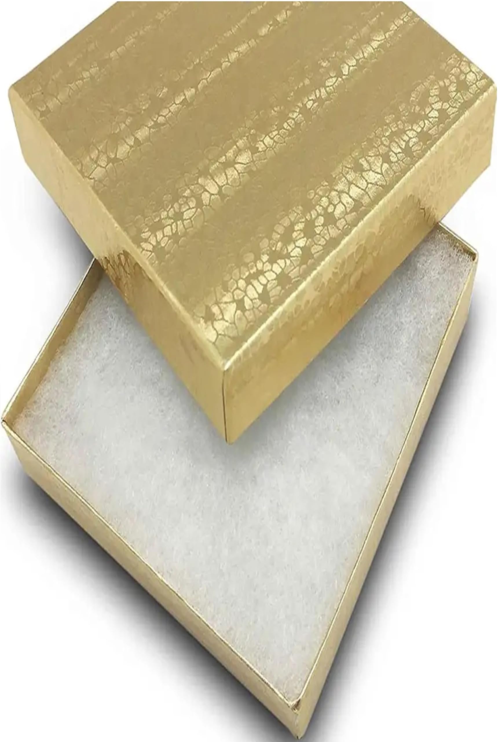 • 【QUALITY MATERIAL】: Our Premium Gold Foil Cotton Filled Cardboard Paper Jewelry Boxes are crafted using high-quality materials to ensure your precious jewelry remains safe and secure. The sturdy cardboard construction is designed to withstand everyday use while protecting your jewelry from scratches and damage
