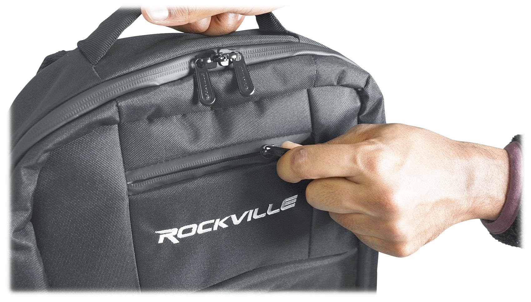 Additional highlights include a drink pocket, padded carry handle, and compatibility with Rockville's RLS2400 desktop laptop stand. Whether you're heading to a gig, rehearsal, or studio, the DJBP24 keeps your essentials safe, organized, and easy to carry.