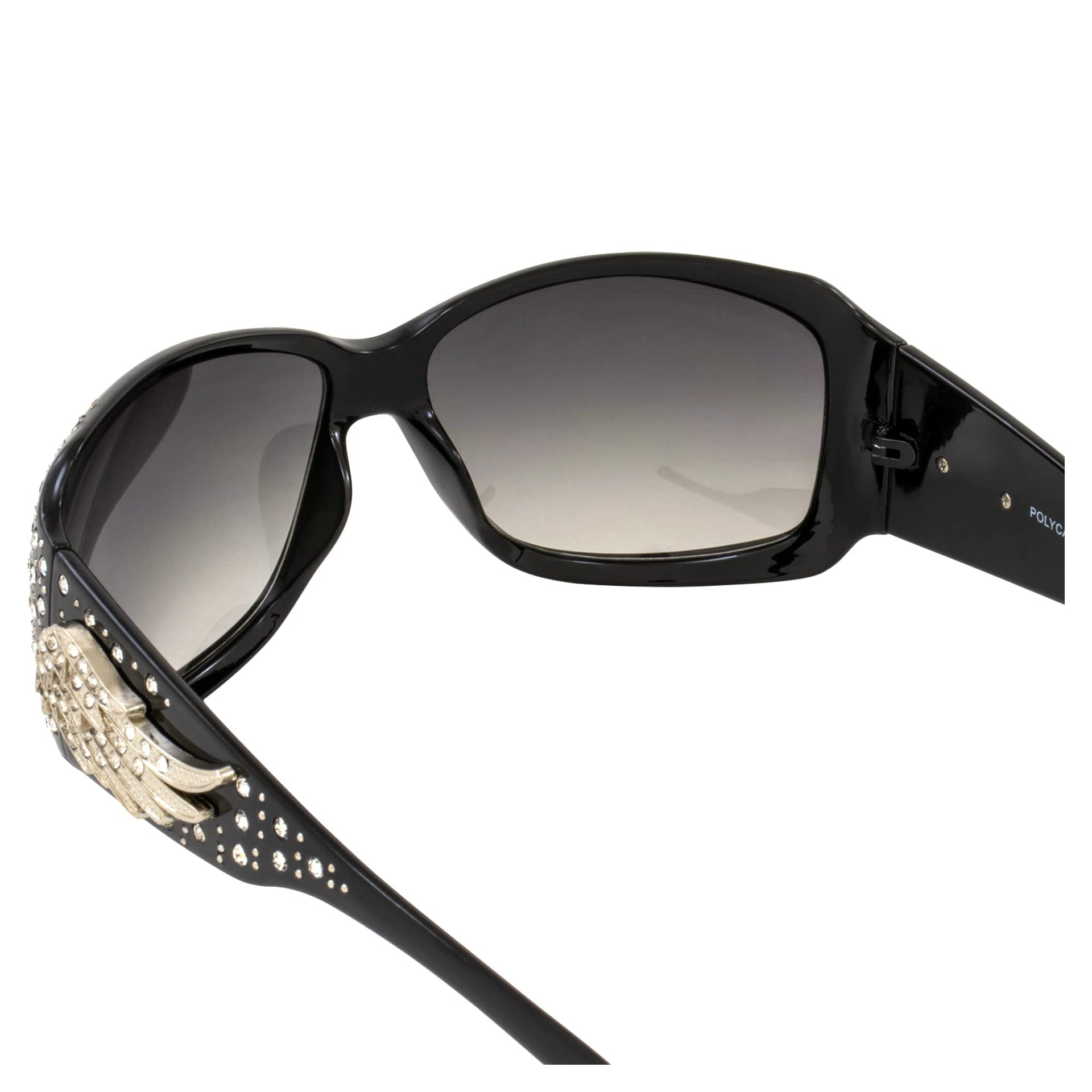 Rodeo Queen Angel Women’s Fashion Sunglasses Black Frame w/Bling Rhinestones & Smoke Gradient Lens