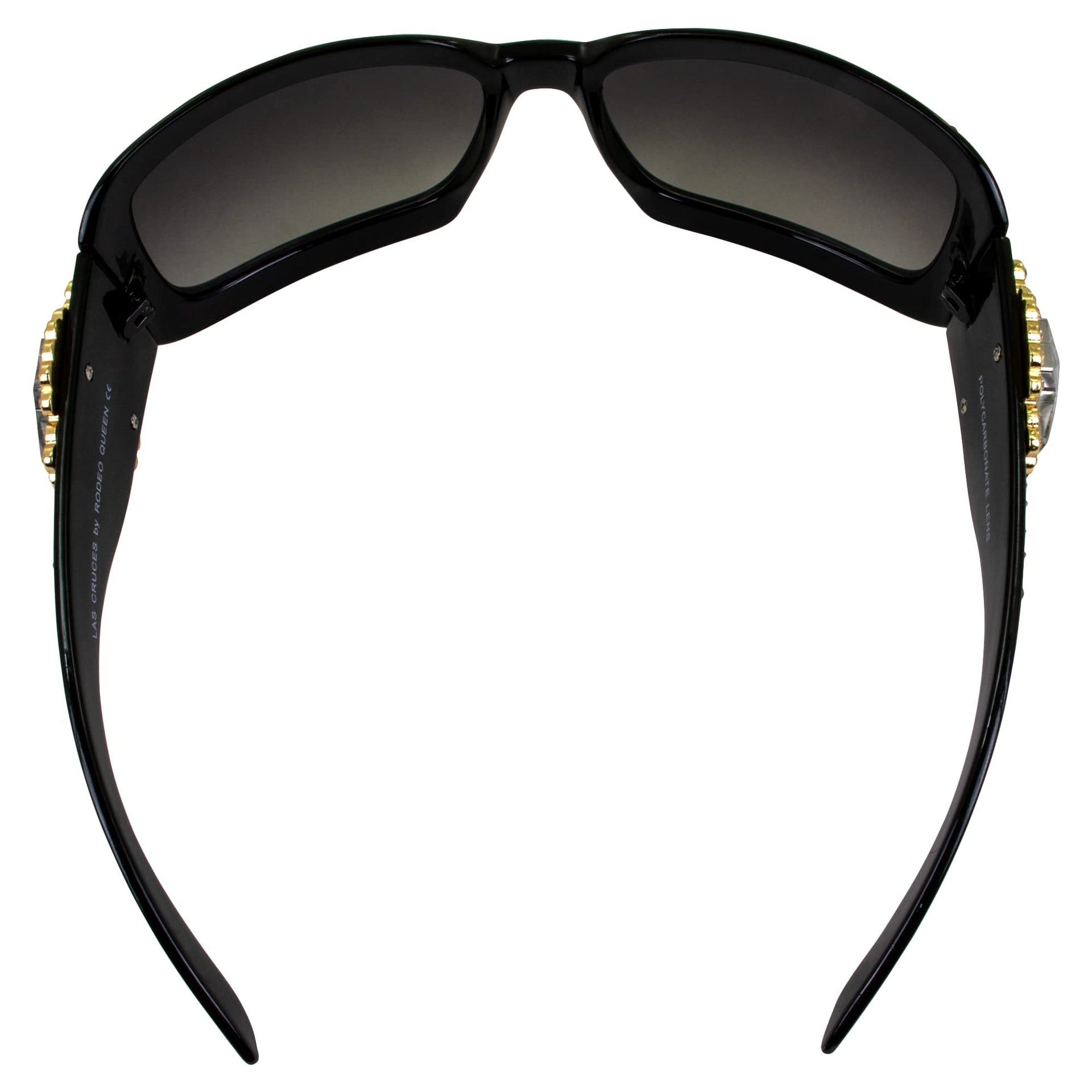 Rodeo Queen La Cruces Women’s Fashion Sunglasses Black Frame w/Bling Rhinestones & Smoke Gradient Lens