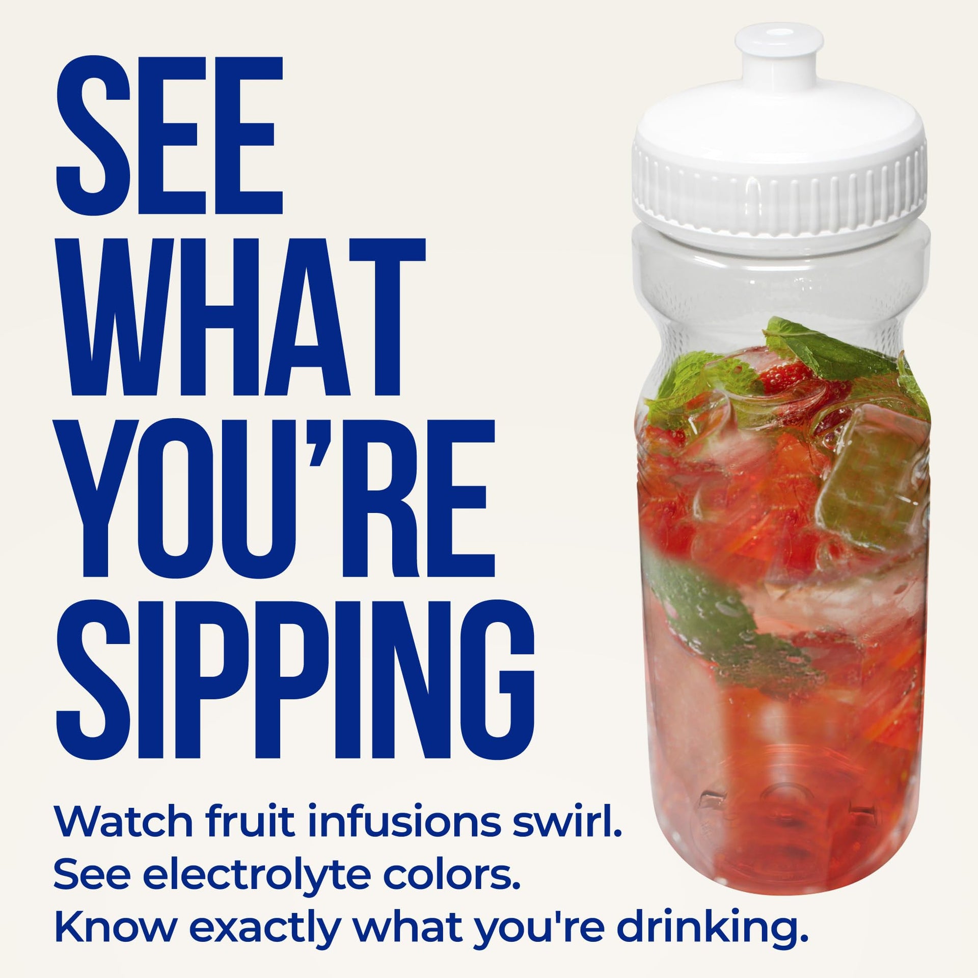• SEE WHAT YOU’RE SIPPING - Professional-grade translucent PET body lets you see fill levels at a glance. Semi-rigid design is lightweight but sturdy, built for regular use without the foggy or flimsy feel of cheap bottles.