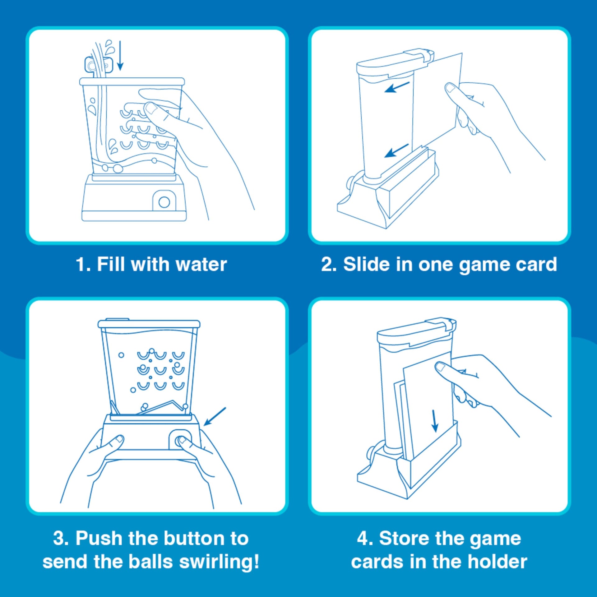 Turn back the clock to the fun you had with 80s toys and 90s toys! The Original Waterfuls classic handheld water game still has the gameplay of the vintage toys you loved years ago. Introduce your own kids to the fun of retro games without batteries and cords, such as old school pinball machines, arcade games, and the Waterfuls handheld game. This game for kids has been updated to include six interchangeable panels with classic arcade backgrounds so there’s always a way to change it up. Backgrounds include Arcade Ball, Space Aliens, Pin Ball, Basketball, Mole Holes, and Road Rally. Just fill the game unit with water then swirl, shoot, and score with a woosh of water-filled fun! It’s easy to understand, quick to learn, and kids can practice fine motor skills while playing the mini arcade game. It’s a durable, compact, and portable game, so it’s perfect as a travel activity for kids ages three and up. Pack it in your bag as a travel essential to keep kids entertained on car rides. It’s a quiet game and an engaging activity for kids’ doctor visits, and a great way to keep kids entertained at restaurants. The background cards store neatly in the game unit for easy clean up and storage. Handheld games are a great choice if you’re looking for games for 3 year olds, 4 year olds, games for 5 year olds, and retro games for the teens in your life. It’s even a super fun gift for adults who love vintage toys and vintage games.
