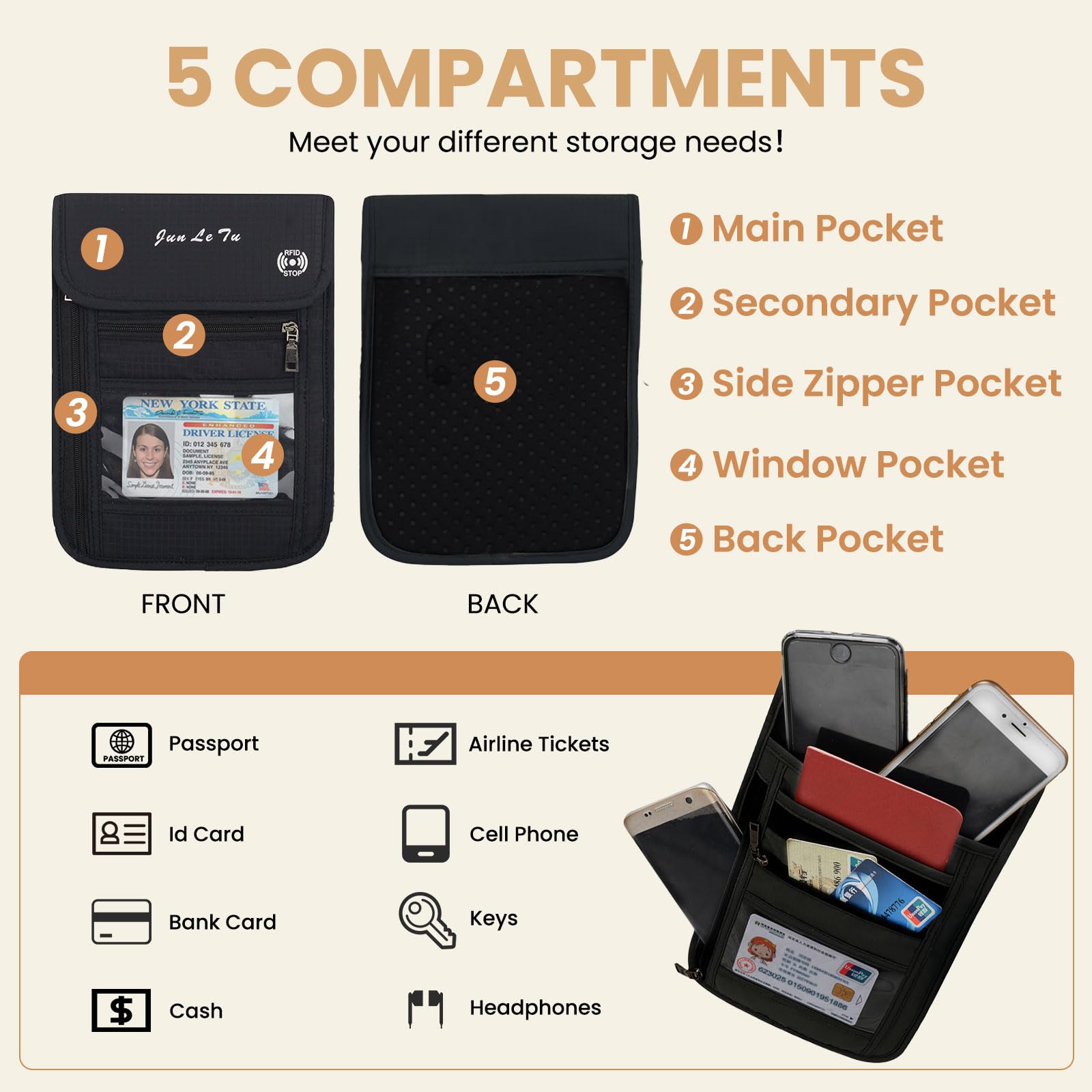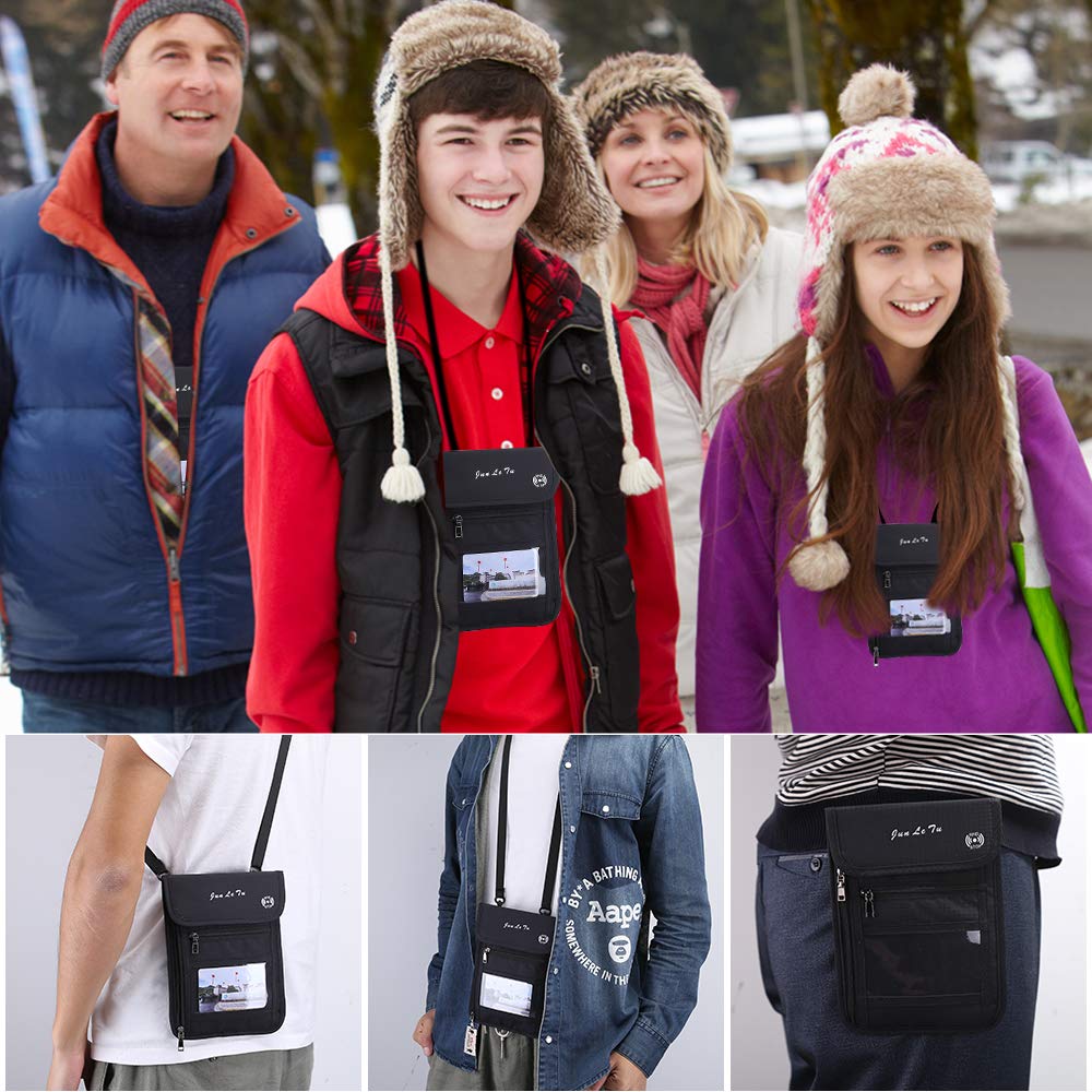ROOSALANCE Passport Holder – RFID Blocking Travel Wallet with Visual Window, Waterproof Neck Pouch & Document Organizer for Men & Women, Black