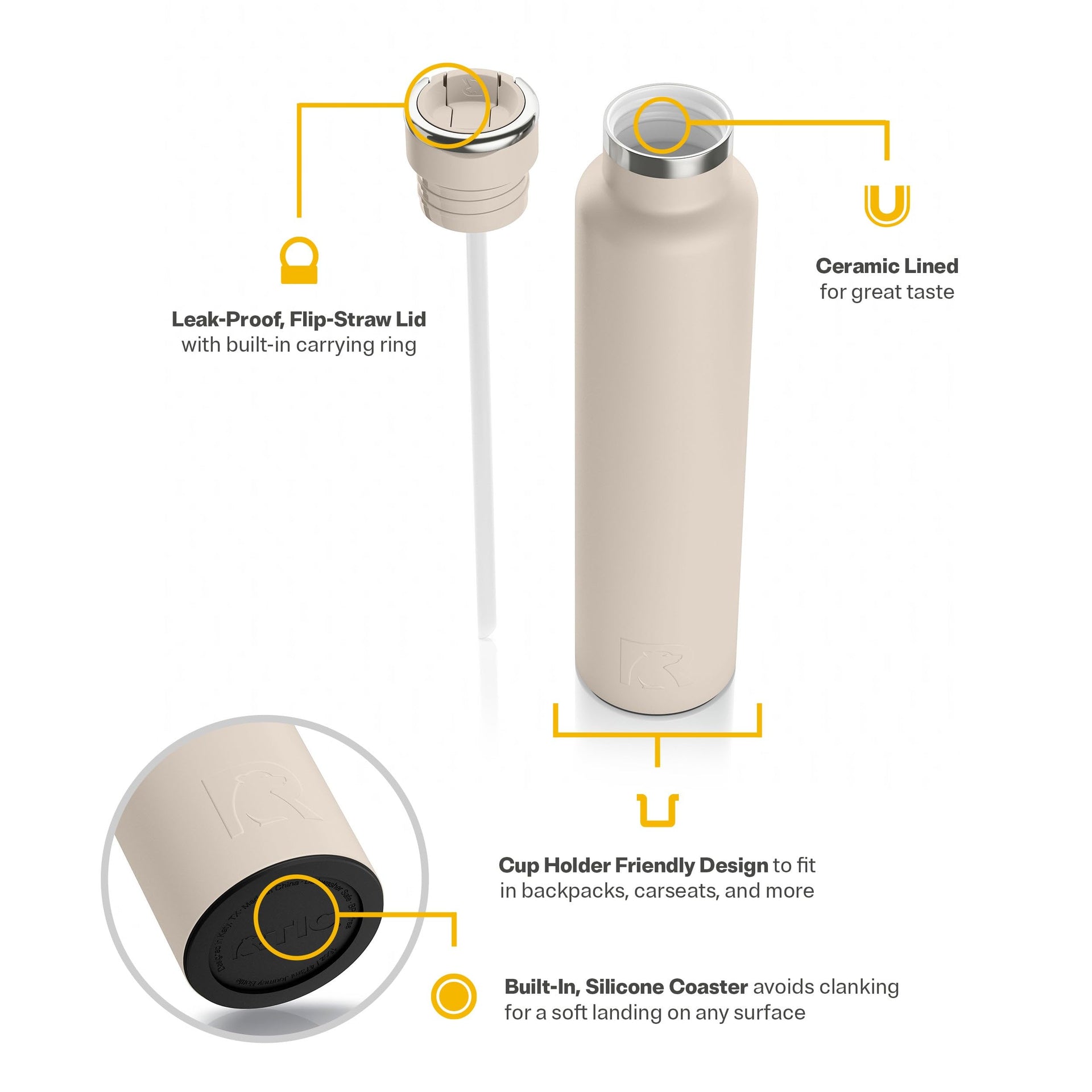 RTIC 26oz Journey Bottle Metal Ceramic Lined Stainless Steel Vacuum Insulated, BPA Free, Reusable, for Water, Hot and Cold Drinks, Travel, Sports