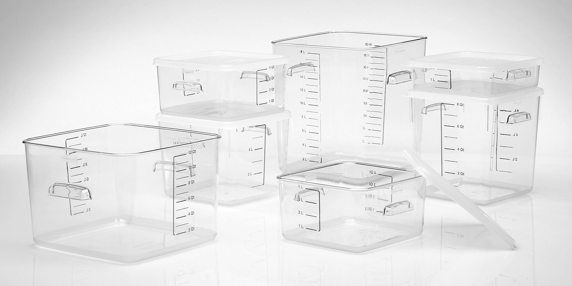 Rubbermaid Commercial Products Plastic Space Saving Square Food Storage Container, 18 Quart, Clear, for Kitchen/Sous Vide/Food Prep