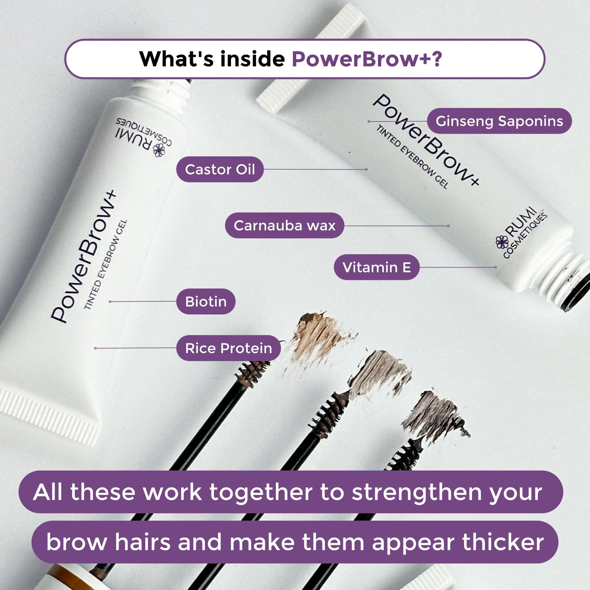Achieve defined, fuller brows with the Rumi Cosmetiques PowerBrow+ Tinted Eyebrow Gel. Specially formulated for mature skin, this eyebrow gel offers an effortless way to enhance your natural brows with a smooth, weightless finish. Whether you’re looking to fill sparse areas, add thickness, or define your arches, PowerBrow+ makes it easy to achieve a customized look. Its versatile 2-in-1 formula provides both color and texture, allowing you to sculpt and style your brows with precision. Designed to deliver long-lasting, natural color, PowerBrow+ keeps your brows looking beautifully defined throughout the day. The gel provides a lightweight yet durable hold that resists humidity, sweat, and rain, so you can confidently wear it from morning to night without worry. It’s great for those seeking a natural, polished brow look without the need for constant touch-ups. The PowerBrow+ Eyebrow Gel features a unique, precision applicator that glides smoothly over even the thinnest hairs, ensuring easy and even application every time. The gel is great for creating a fuller, more sculpted appearance without the heavy, unnatural feel of traditional brow gels. Its quick-drying formula ensures that your brows stay in place without the need for a lengthy drying time. Infused with nourishing ingredients like castor oil, this eyebrow gel helps strengthen and condition your brows with every use. PowerBrow+ promotes healthier-looking brows, encouraging growth and giving your eyebrows the care they need. It’s suitable for all skin types, including sensitive skin, offering a gentle, irritation-free experience. PowerBrow+ is vegan and cruelty-free, making it a great addition to your beauty routine. Available in three versatile shades: Light Latte, Medium Mocha, and Dark Espresso Brown. It’s easy to find the natural match for your hair color. Whether you’re looking to define, fill, or thicken your brows, PowerBrow+ is an excellent choice for a polished, natural look.