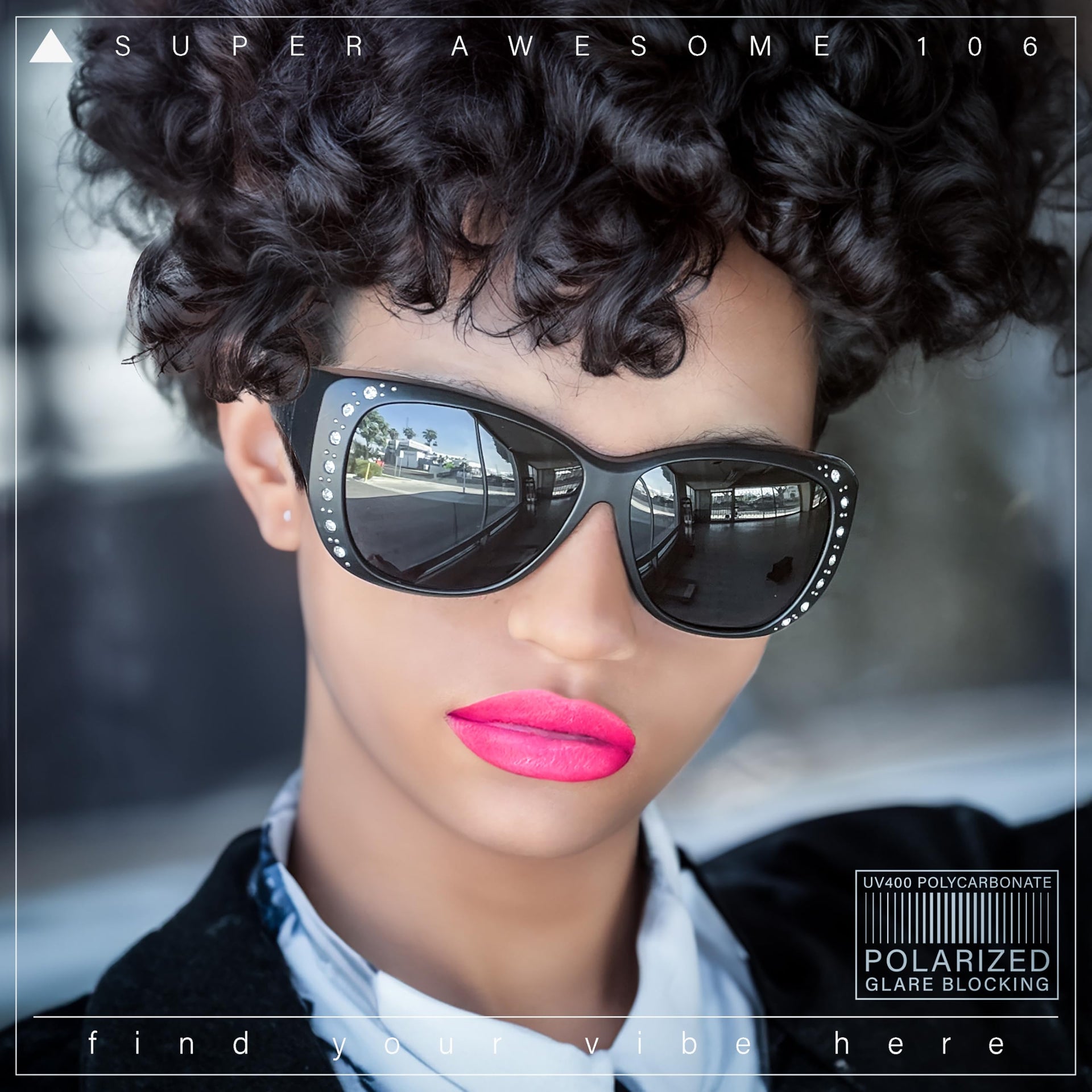 SA106 women's oversize bling rhinestone large butterfly anti-glare polarized lens sunglasses. (pl7833bx)