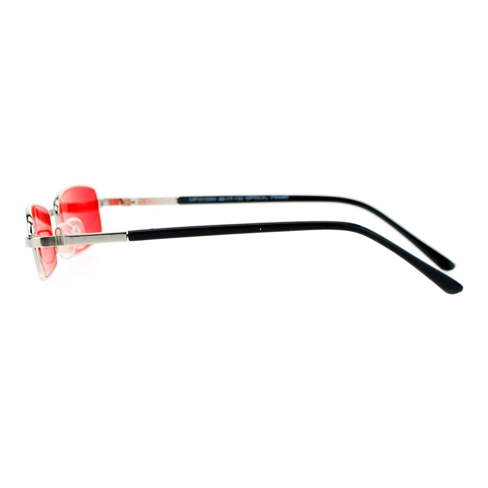 SA106 Small Mens Rectangular Metal Rim Classic Color Lens Sunglasses Silver Red
