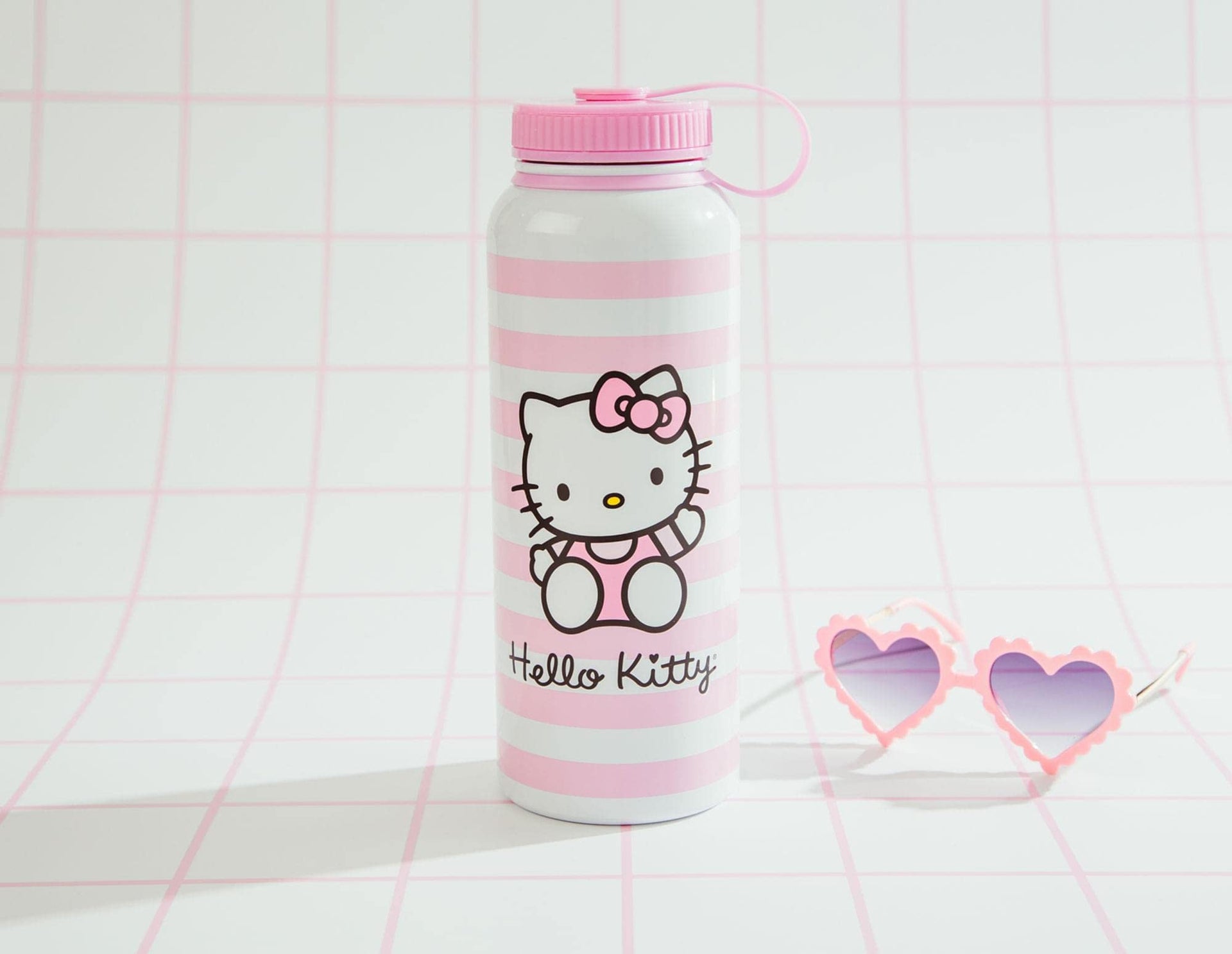 Sanrio Hello Kitty Pink Stainless Steel Water Bottle With Leak-Resistant Lid | Double-Walled Metal Sports Jug | Holds 42 Ounces