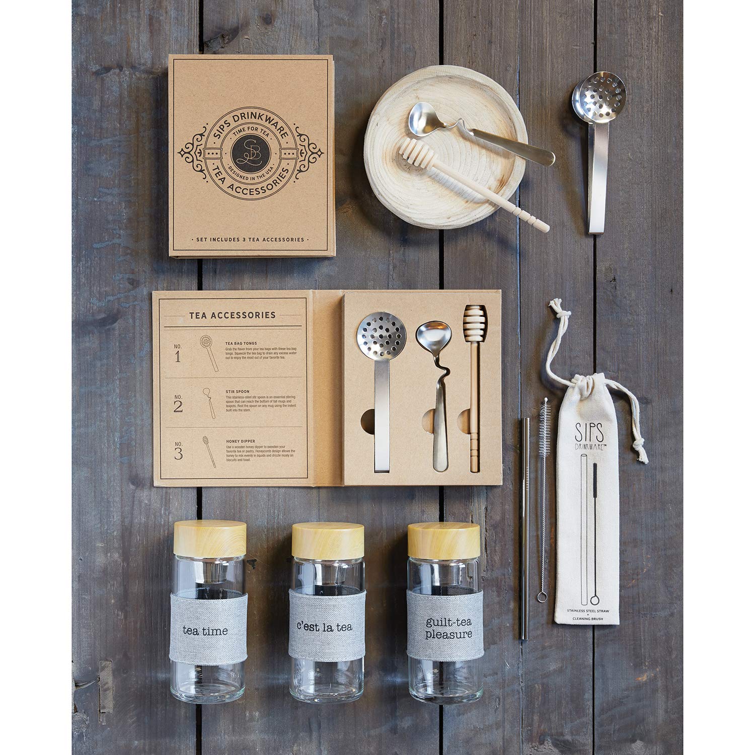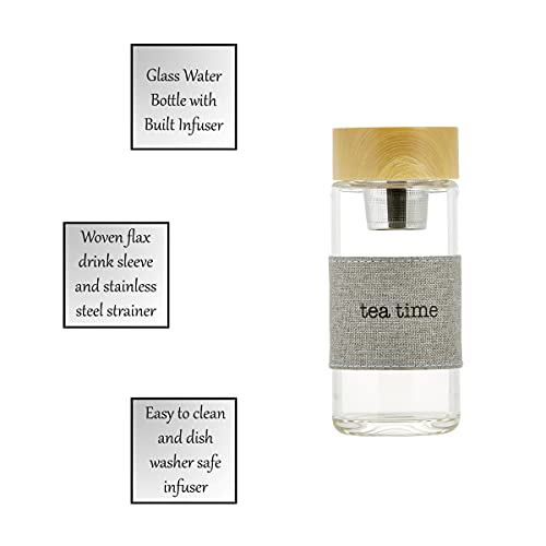 SB Design Studio SIPS F1404 Glass Water Bottle with Built-In Tea Infuser, 12-Ounces, Tea Time