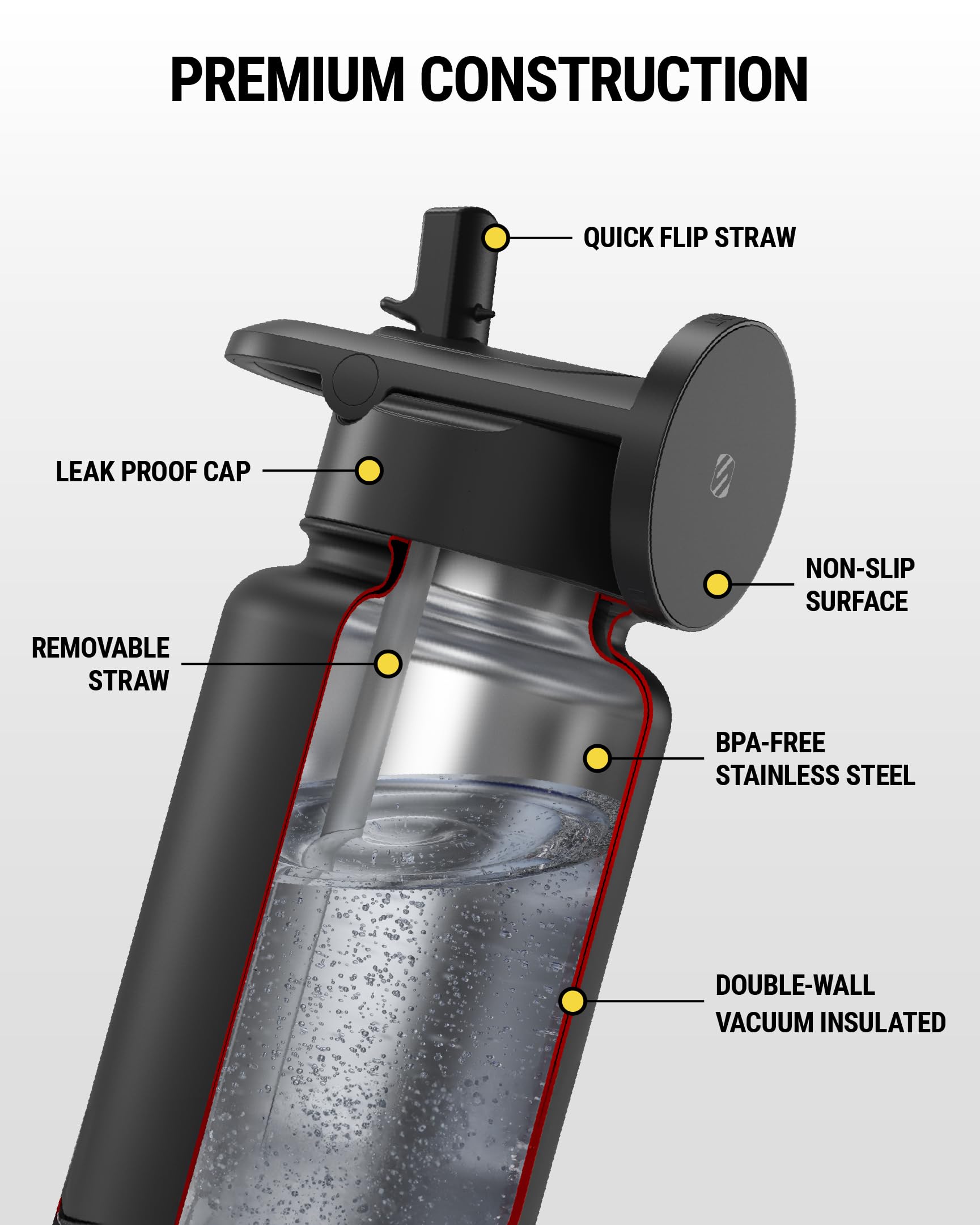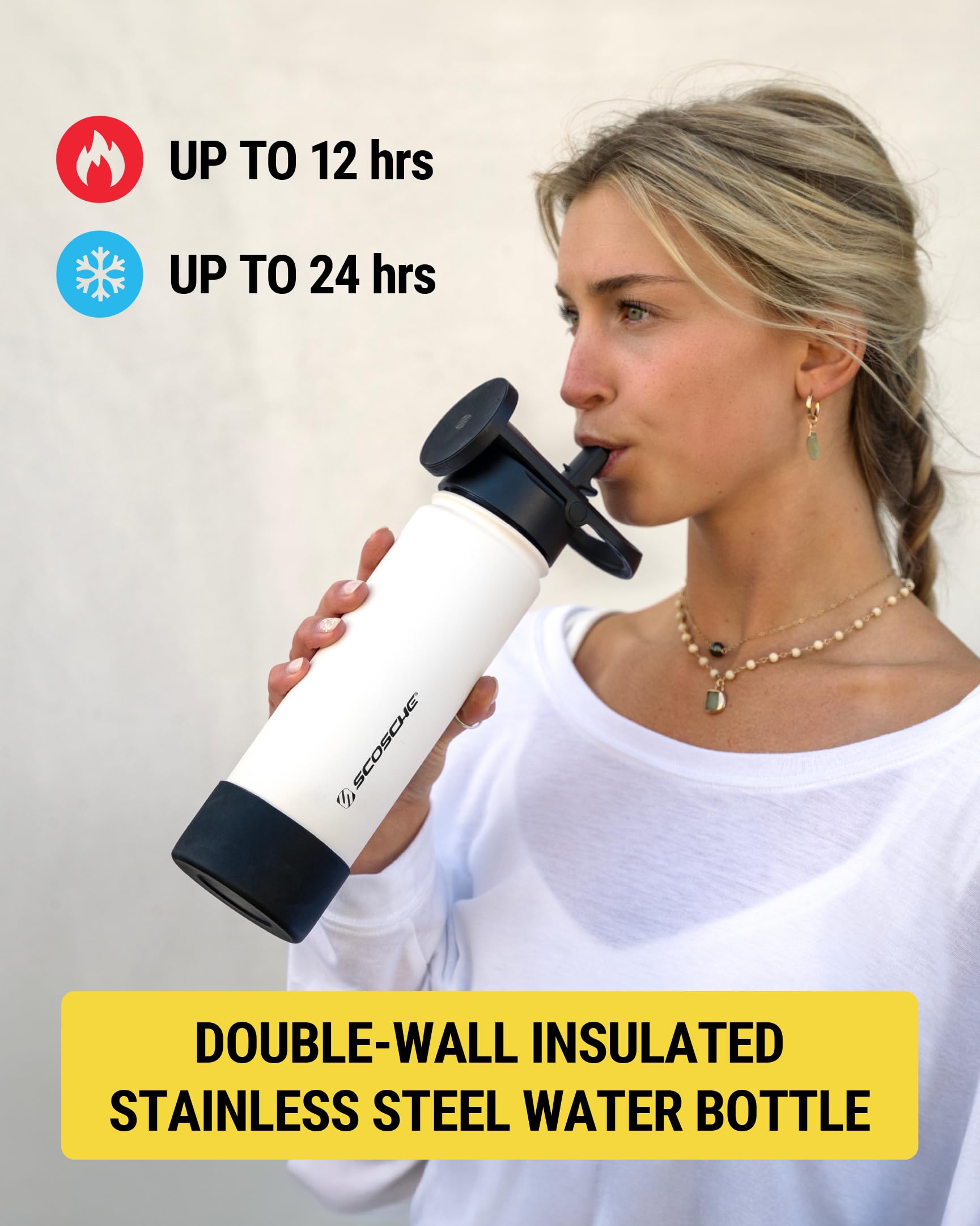 Scosche MFMS22 MagicMount Flask 22 oz Stainless Steel Water Bottle with MagSafe Phone Mount Stand, 12H Hot & 24H Cold Insulated Flask with Magnetic