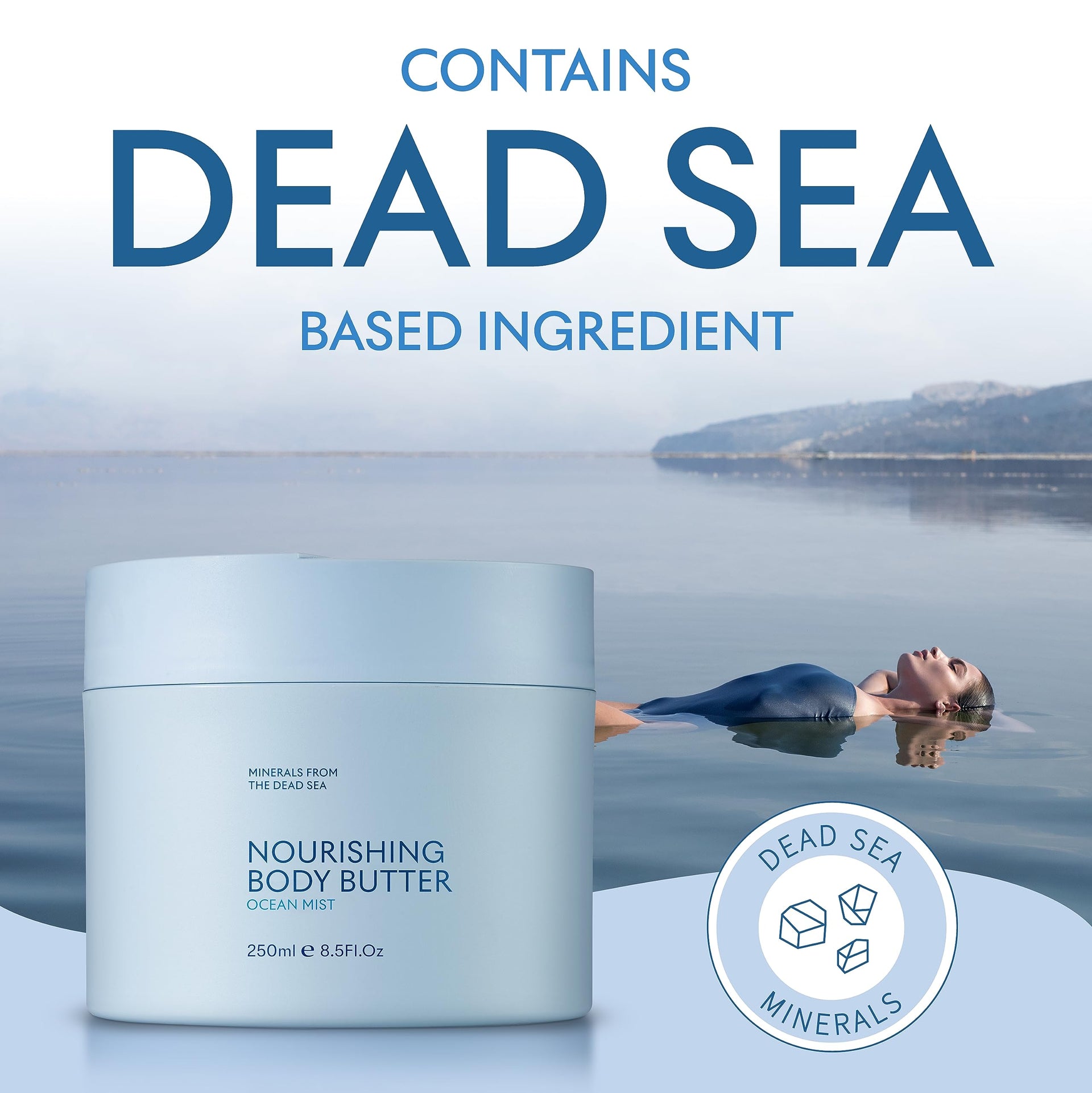 - Dead Sea Minerals: Using natural - perhaps even mystical - ancient Dead Sea minerals, and healthy plant-based ingredients, the butter includes shea butter, cocoa butter, olive oil, and vitamins C & E; the ultra-rich intensive blend nourishes, softens, and soothes the skin; complete your regimen with our Mineral Soap and Body Scrub