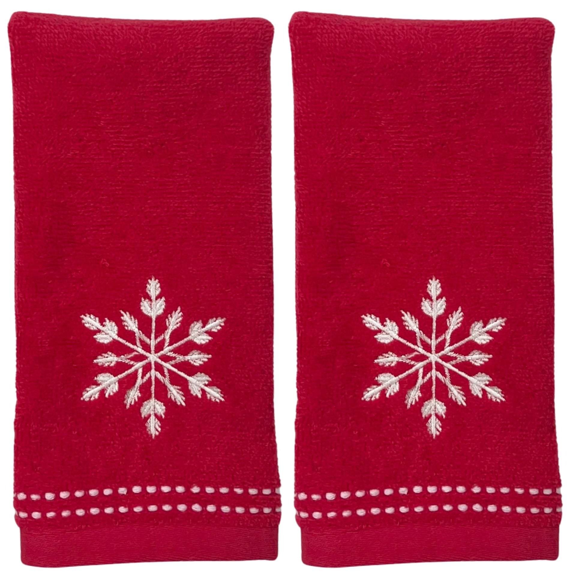 Serafina Home Christmas Bath Fingertip Towels, Red with White Embroidered Snowflake, 2 Piece Set, 12 x 18 inches, 100% Cotton,for bathrooms & Kitchens